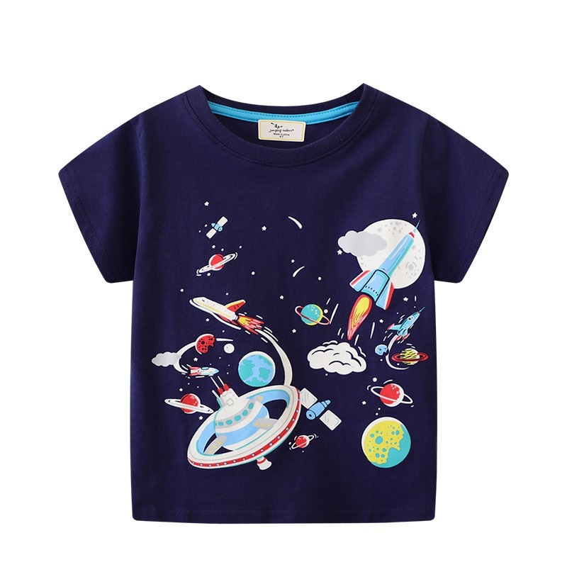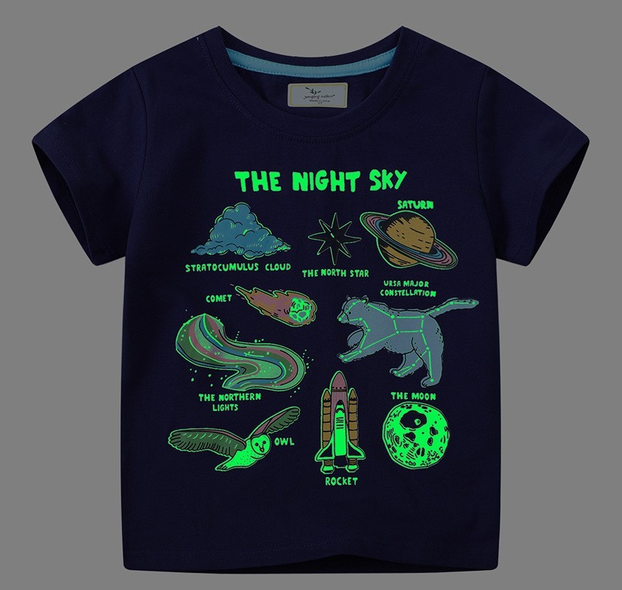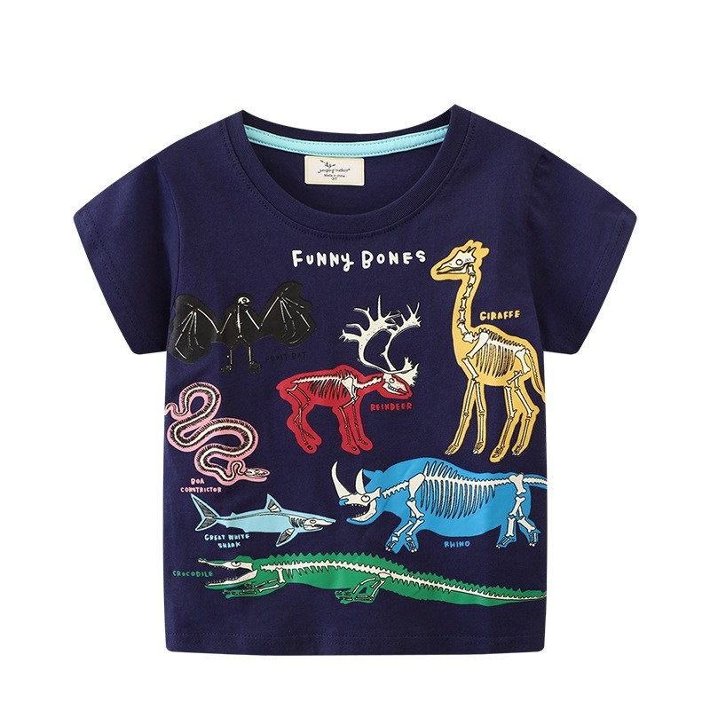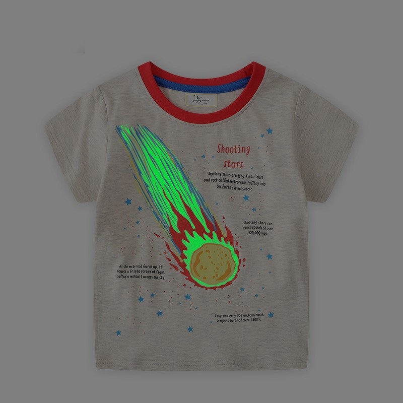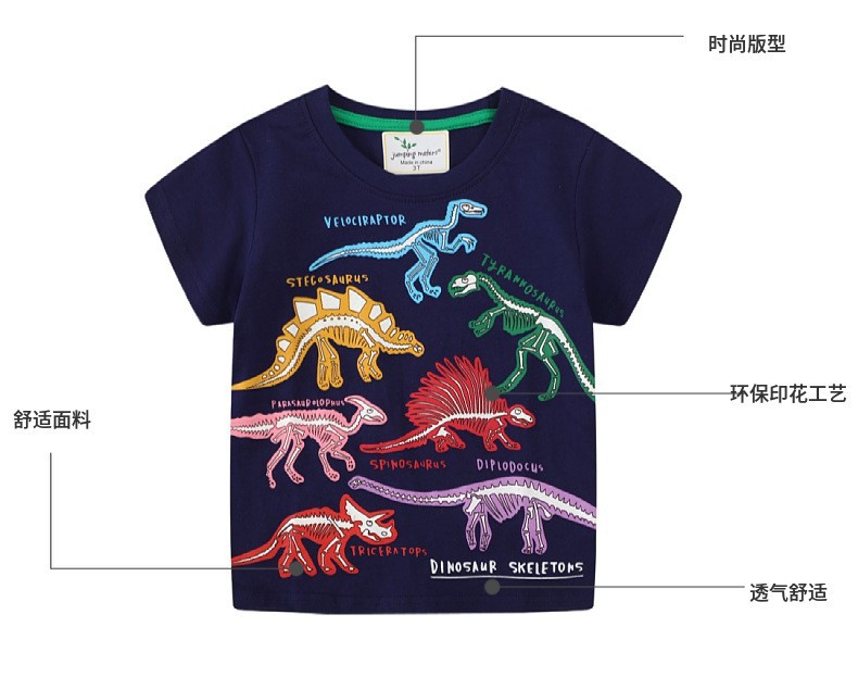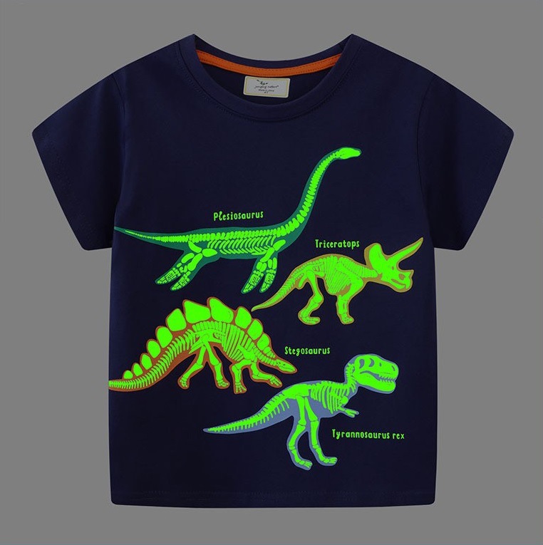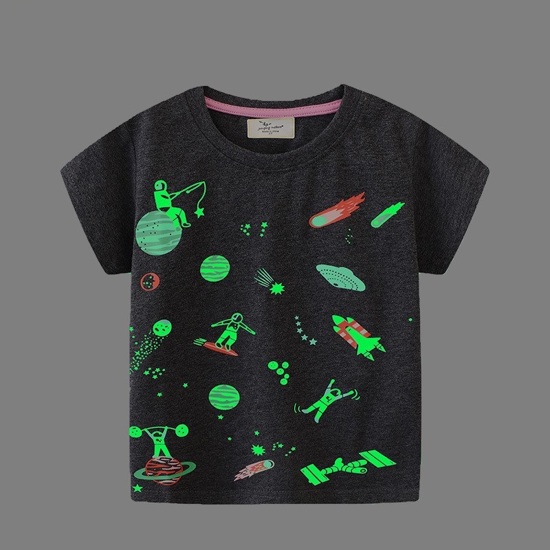 2025 여름 남아 야광 만화 프린트 반팔 라운드넥 티셔츠 공룡 상어 반팔 티셔츠 소형 어린이용 재고 직배송스토어 가기