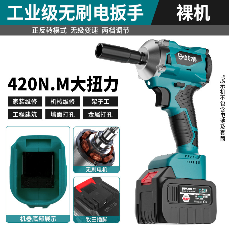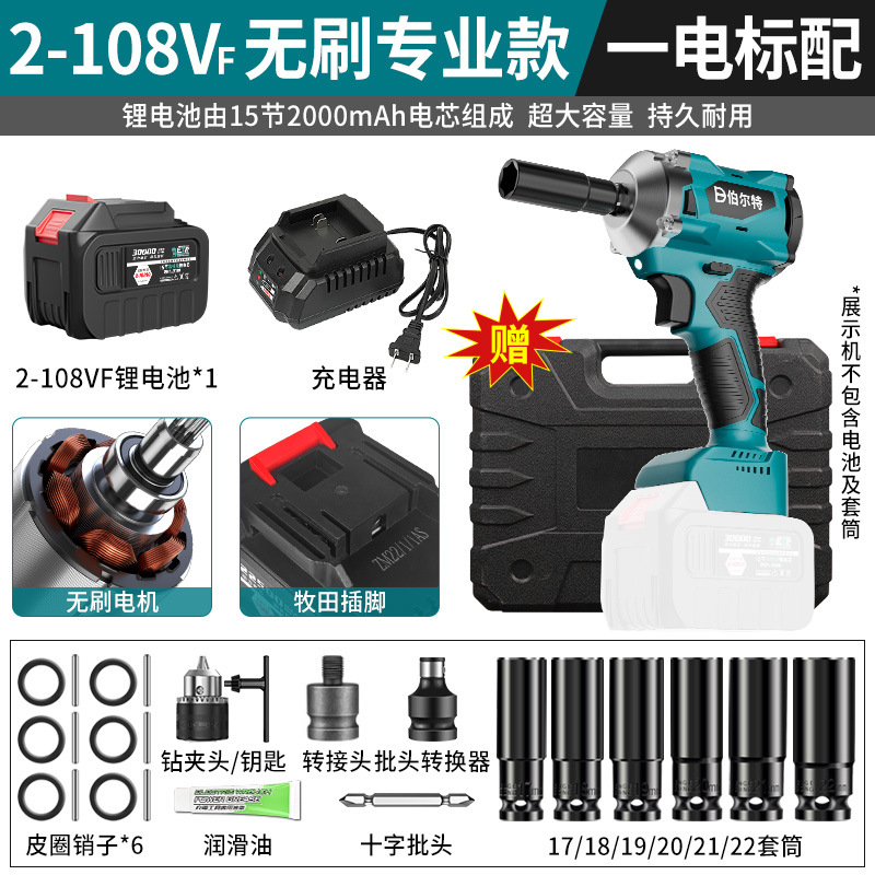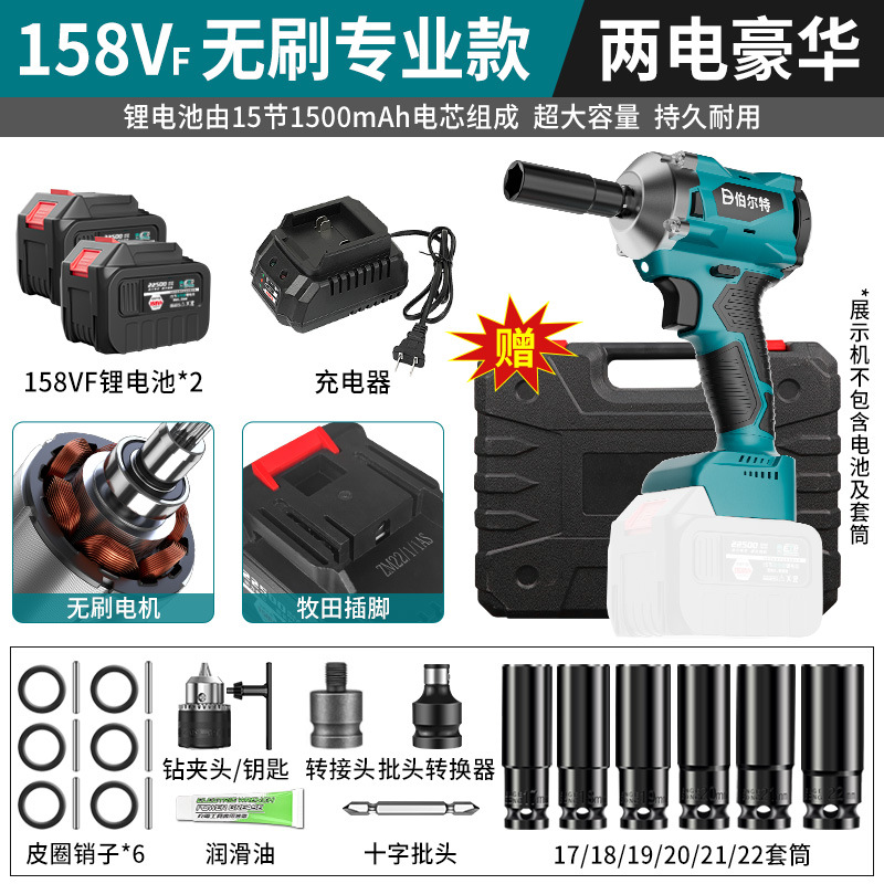 버트 브러시리스 전기 렌치 리튬 배터리 충전식 고무 코팅 렌치 대형 토크 충격 목공 슬리브 에어 캐논