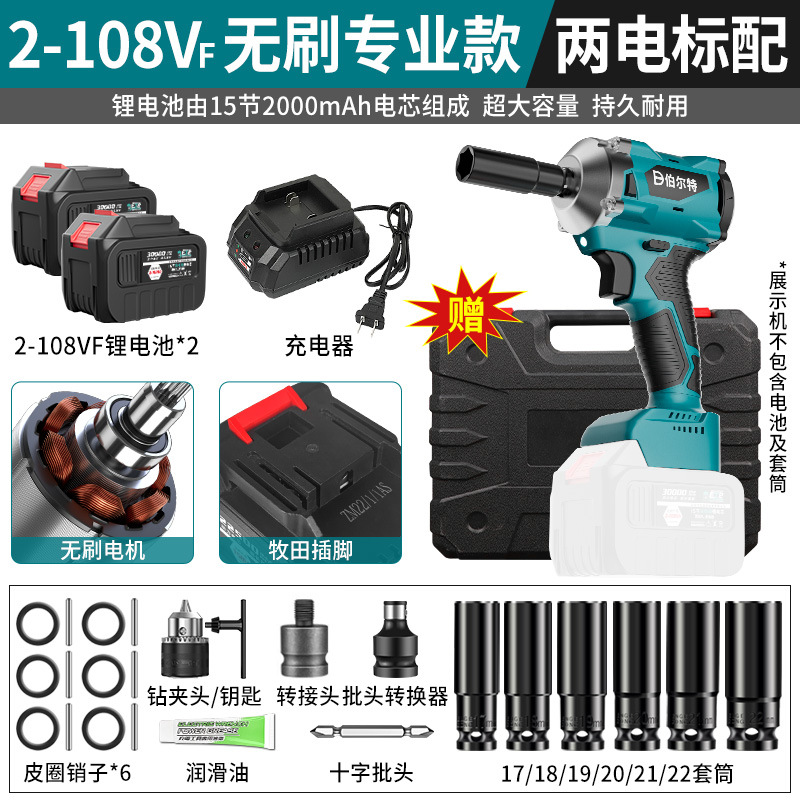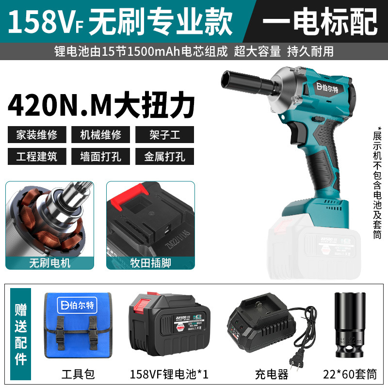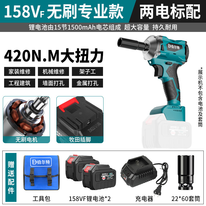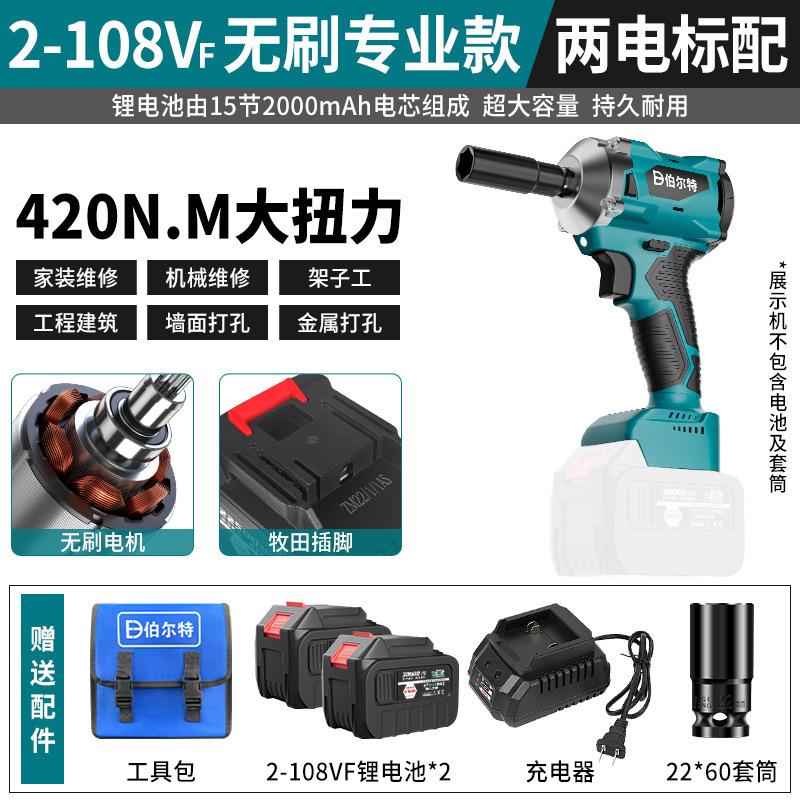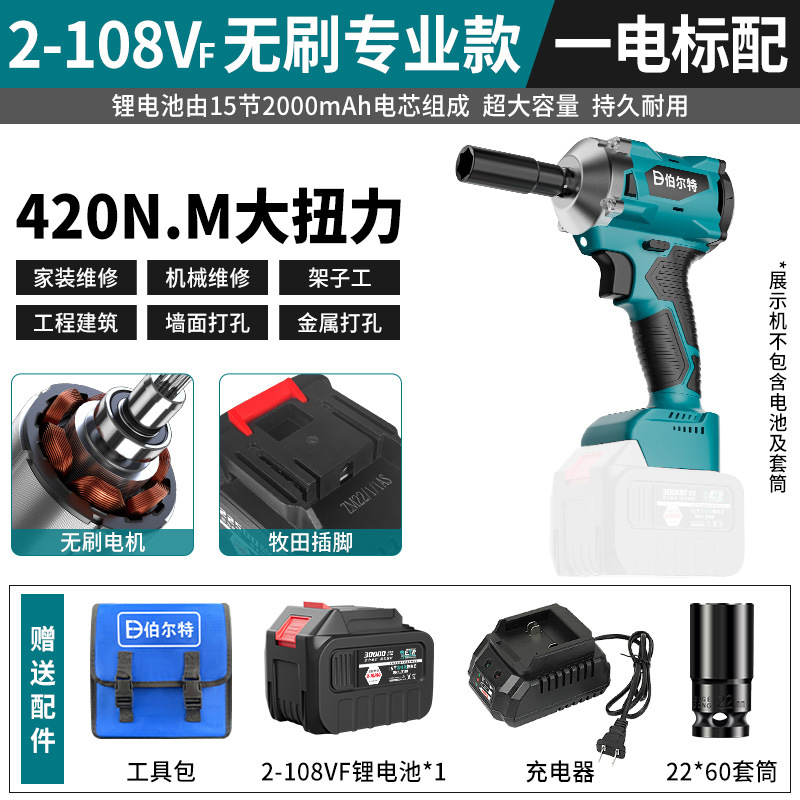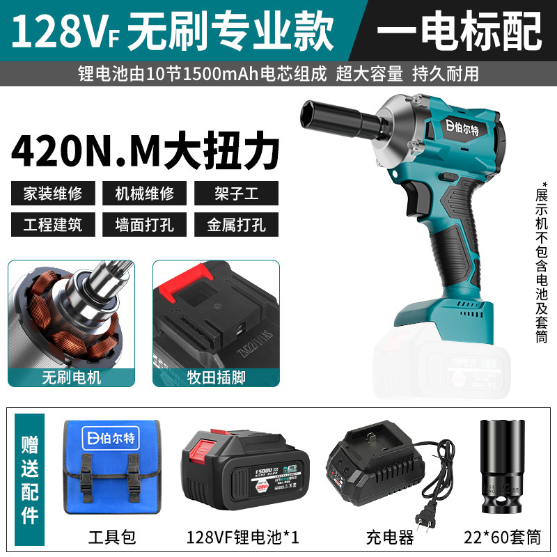버트 브러시리스 전기 렌치 리튬 배터리 충전식 고무 코팅 렌치 대형 토크 충격 목공 슬리브 에어 캐논스토어 가기