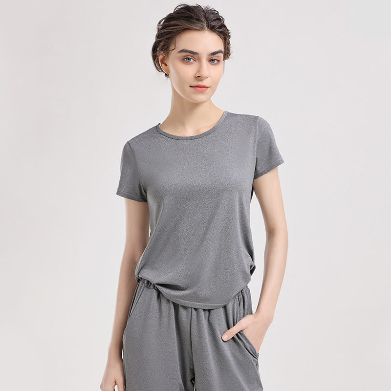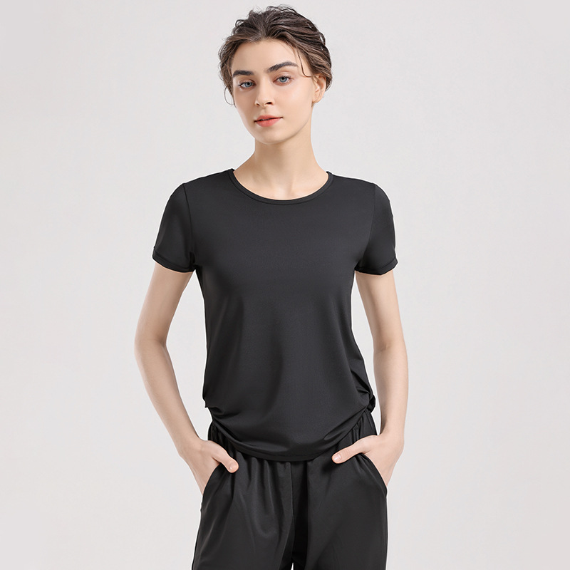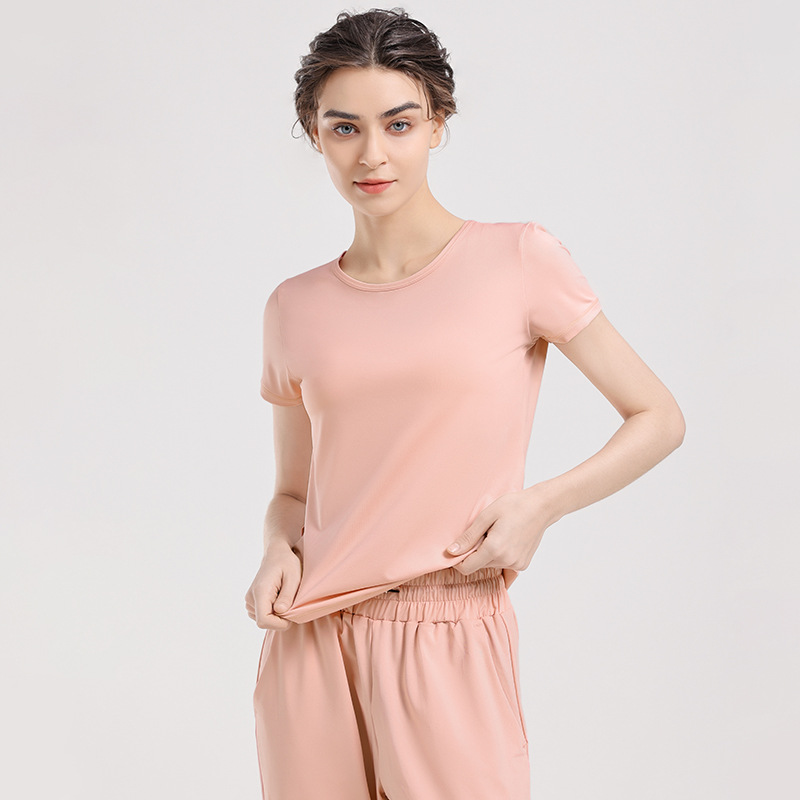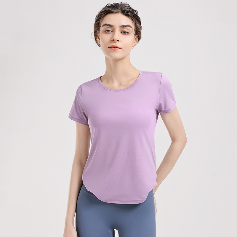 2024 년 여름 새로운 요가 티셔츠 여성용 슬림 핏 슬리밍 퀵 건조 필라테스 스포츠 러닝 반팔 탑