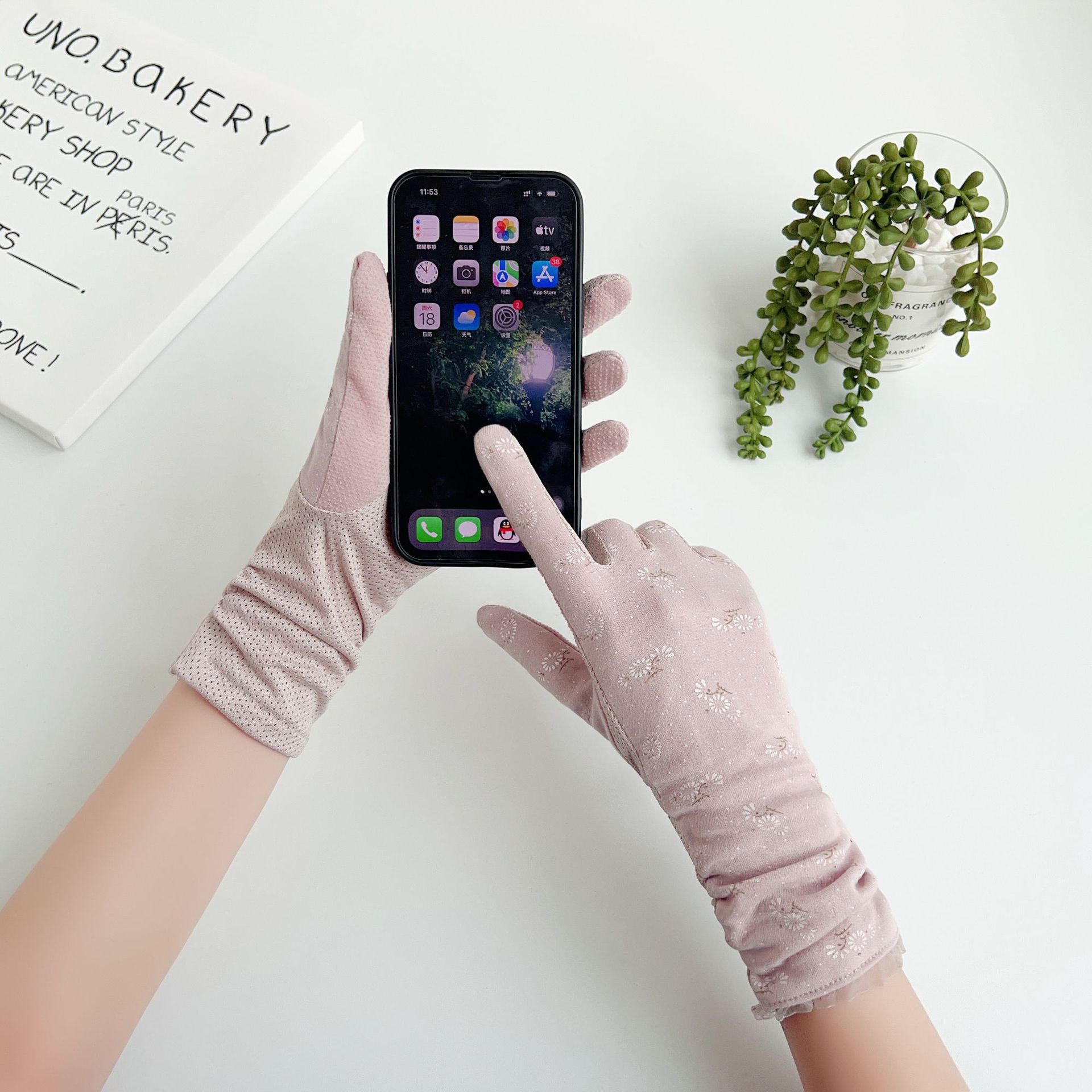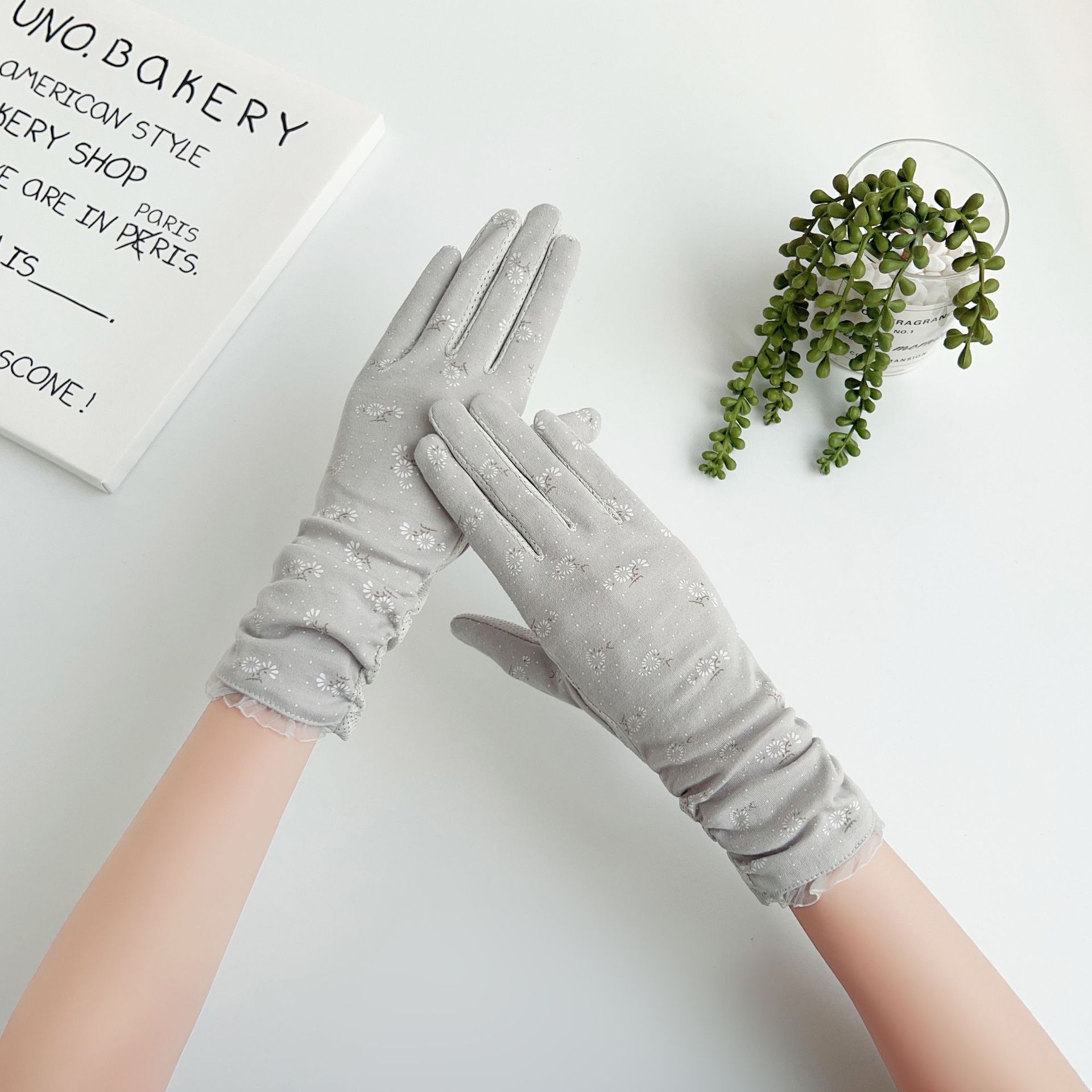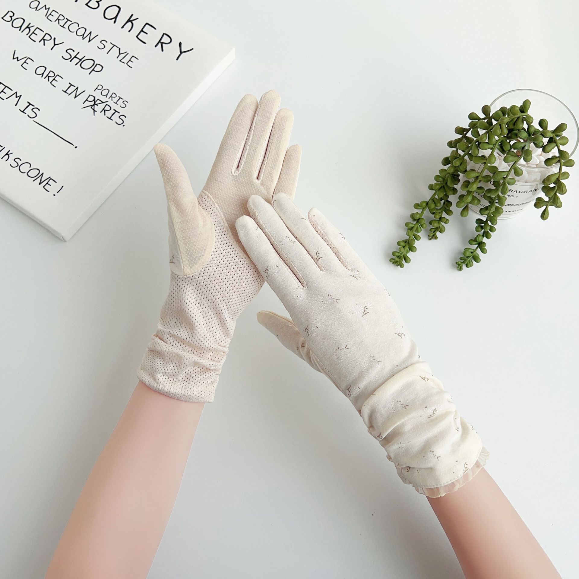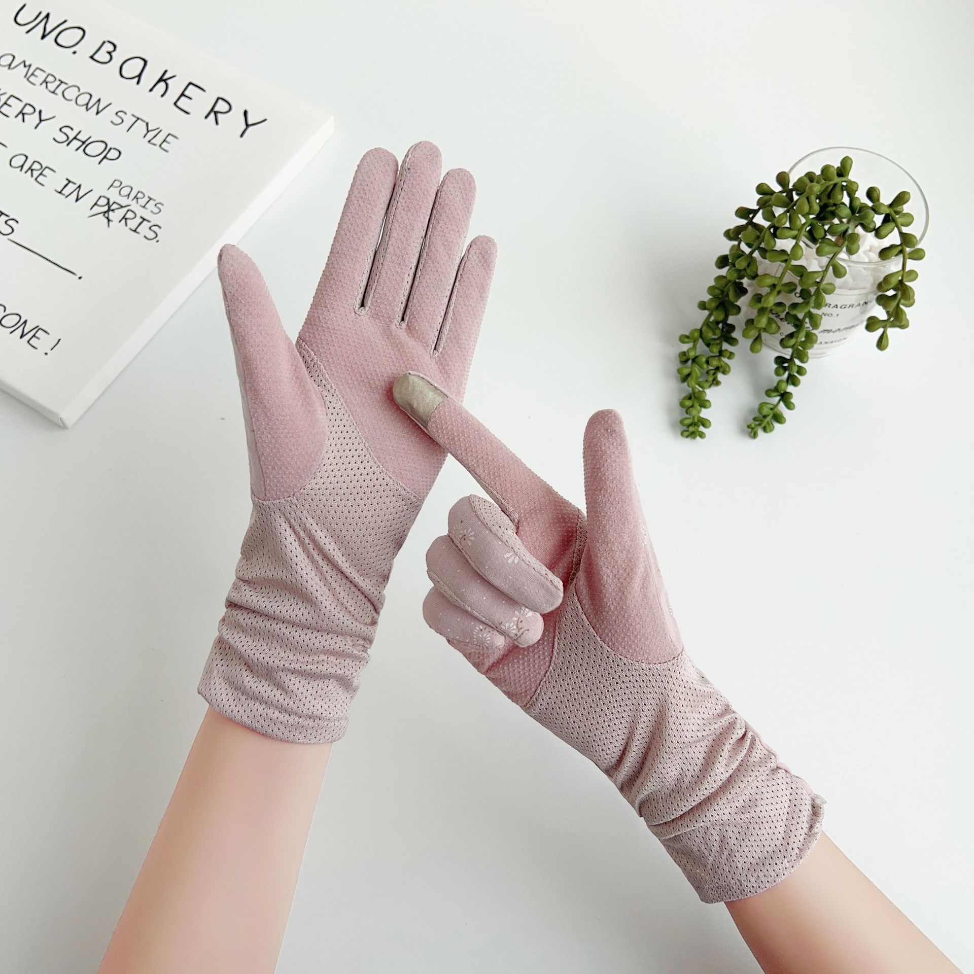 야외 라이딩 전기 자동차 터치 스크린 미끄럼 방지 여성 여름과 봄의 얇은 자외선 차단 중간 길이 장갑스토어 가기