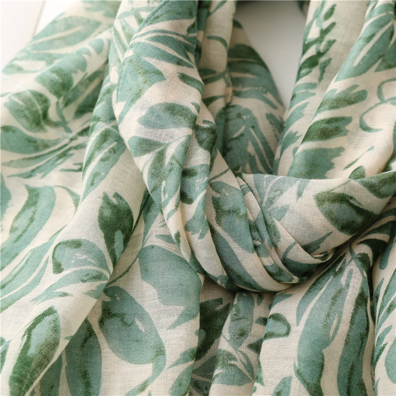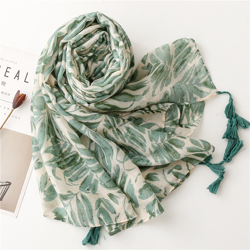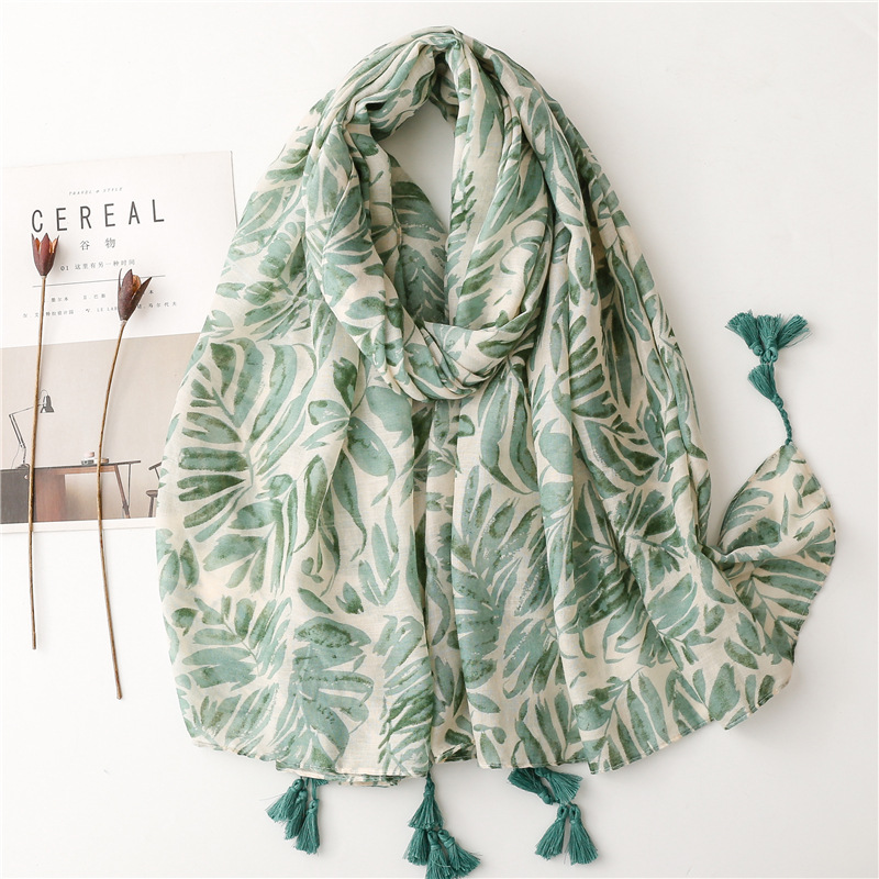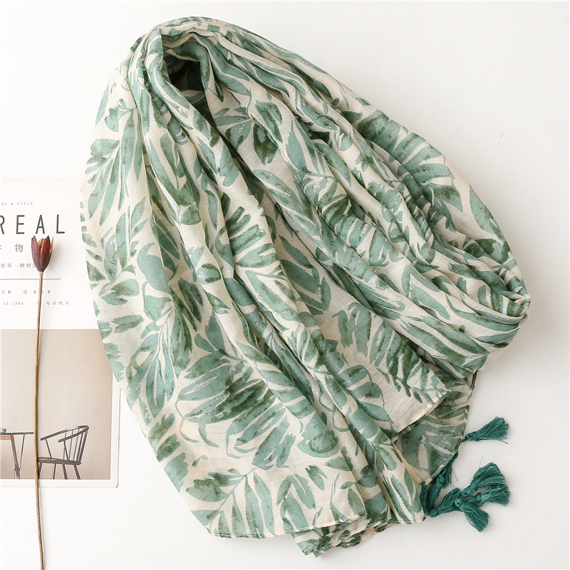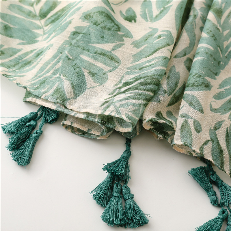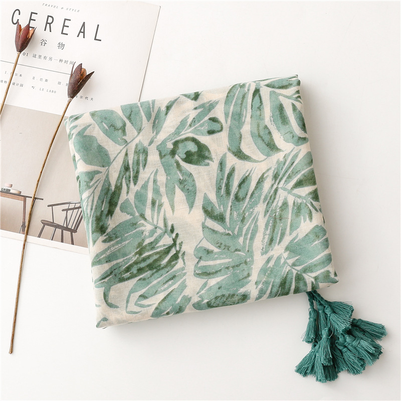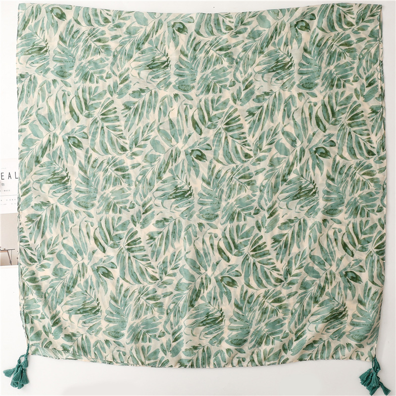여름 신선한 해변 여행 자외선 차단제 숄 발리 원사 면화와 린넨 스카프 녹색 바나나 잎 여성용 장식 스카프