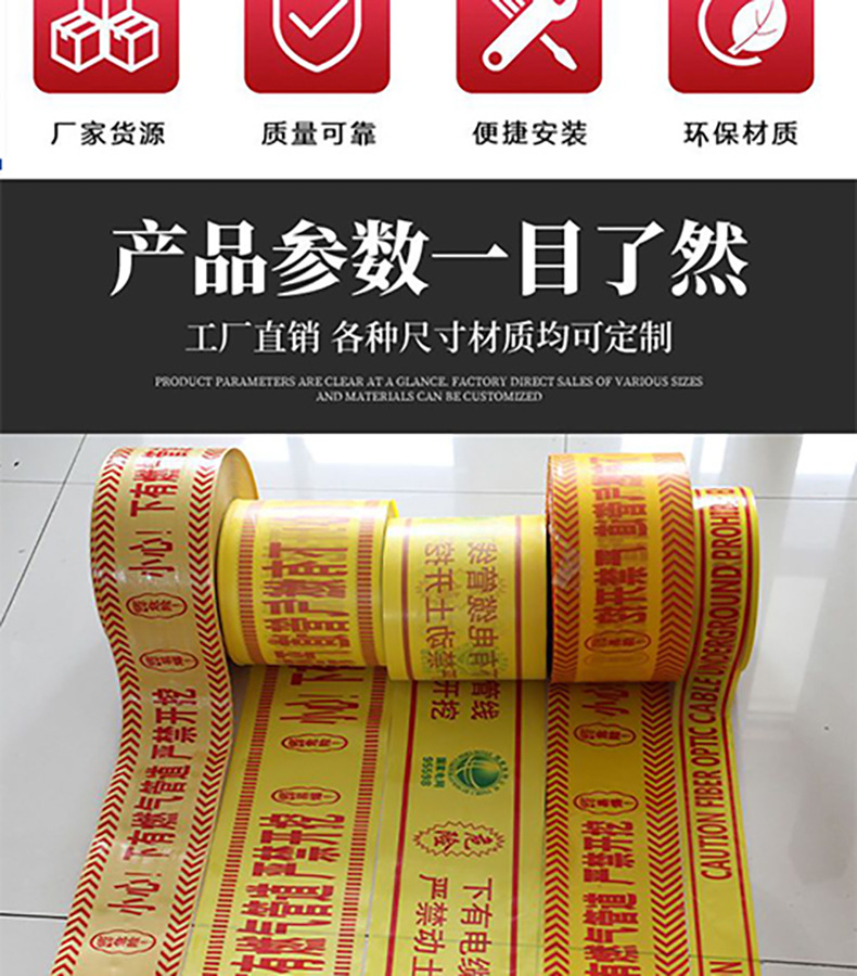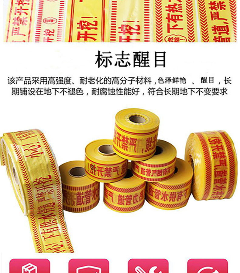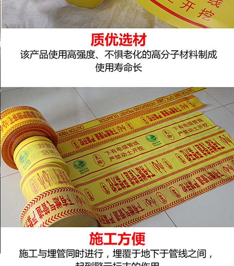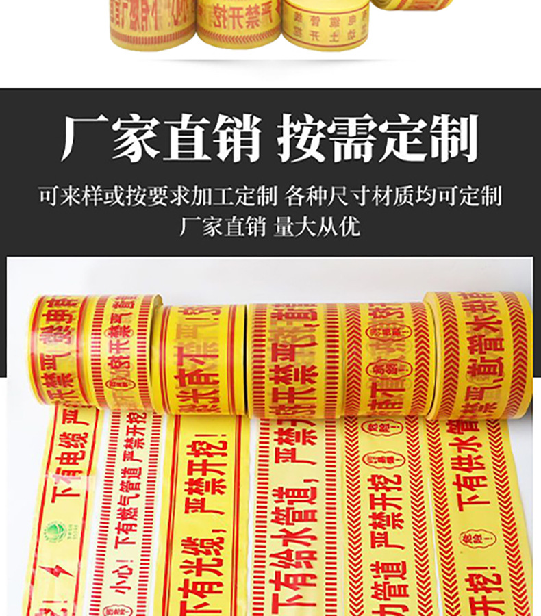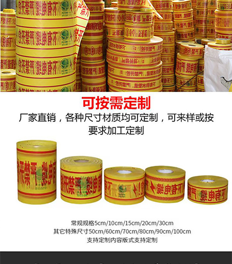 지하 경고 테이프 PE 석유 가스 온수관 경고 테이프 케이블 통신 급수 케이블 안전 격리 테이프