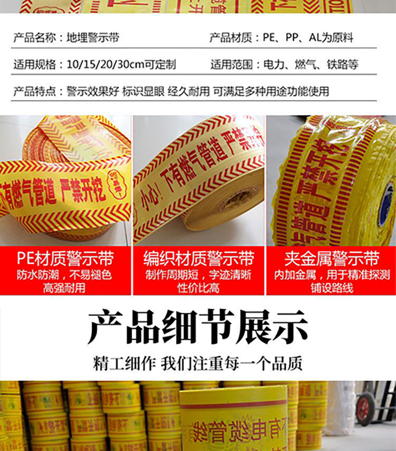지하 경고 테이프 PE 석유 가스 온수관 경고 테이프 케이블 통신 급수 케이블 안전 격리 테이프스토어 가기