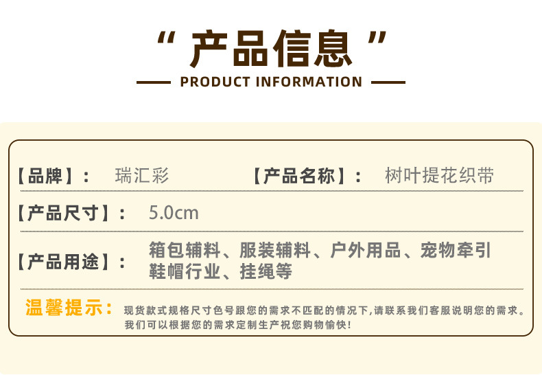 • 푸른 잎 * 5.0cm * 자카드 웨빙 * 모조 나일론