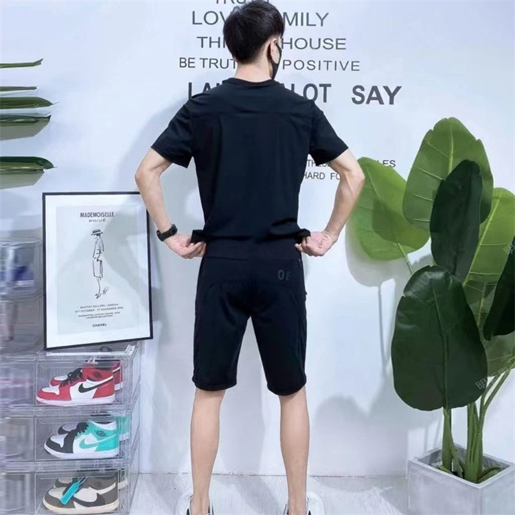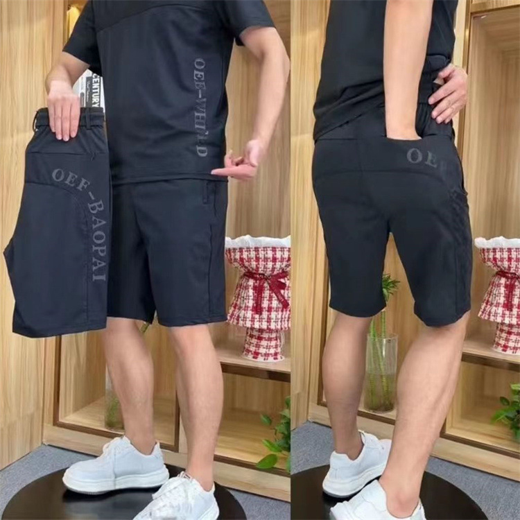 아이스 실크 느슨한 캐주얼 세트 스포츠 세트 남자의 23 여름 메쉬 스티치 유행 잘 생긴 높은 탄성 반바지 세트스토어 가기
