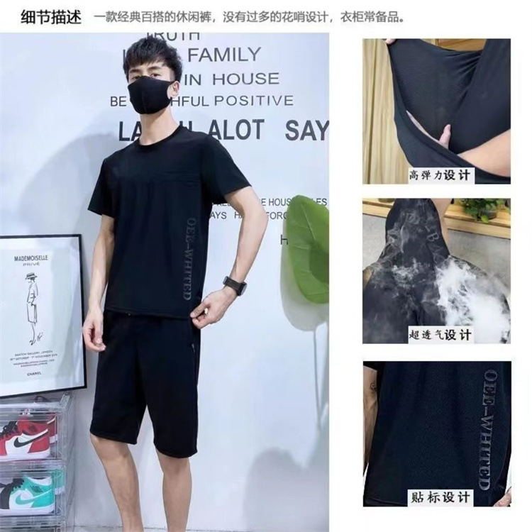 아이스 실크 느슨한 캐주얼 세트 스포츠 세트 남자의 23 여름 메쉬 스티치 유행 잘 생긴 높은 탄성 반바지 세트