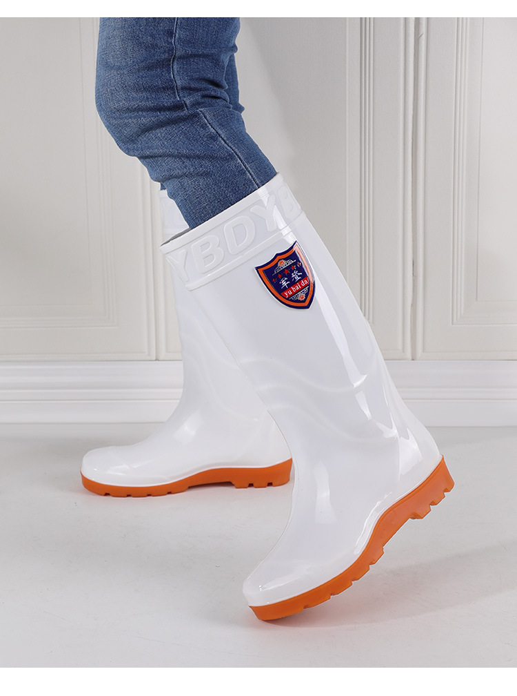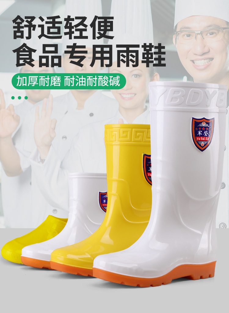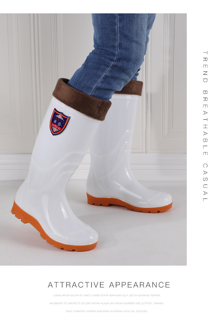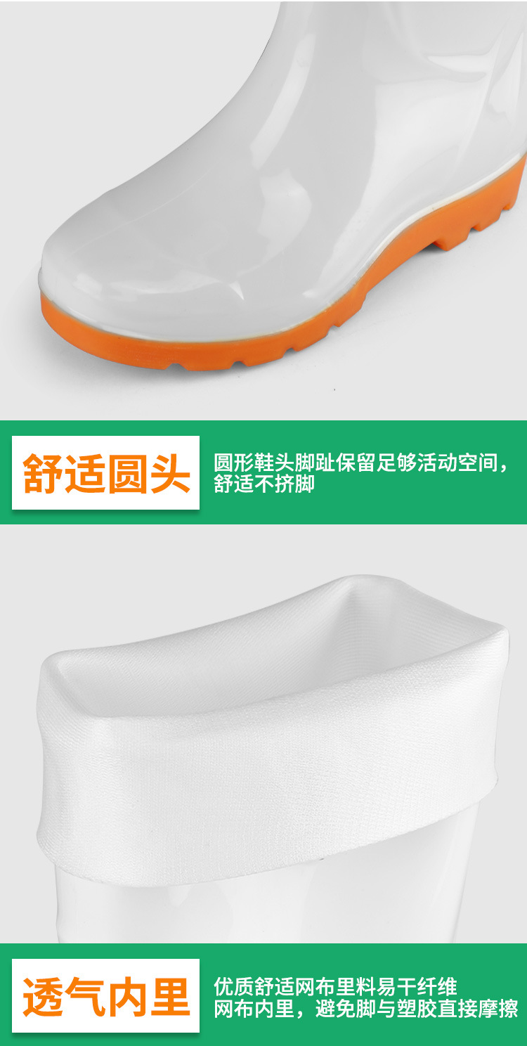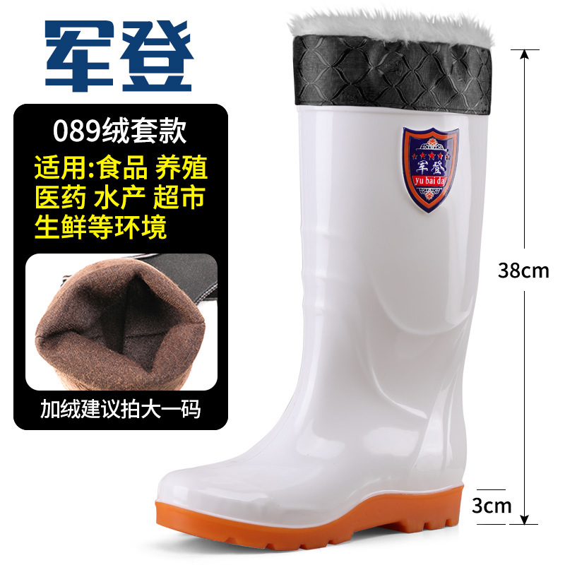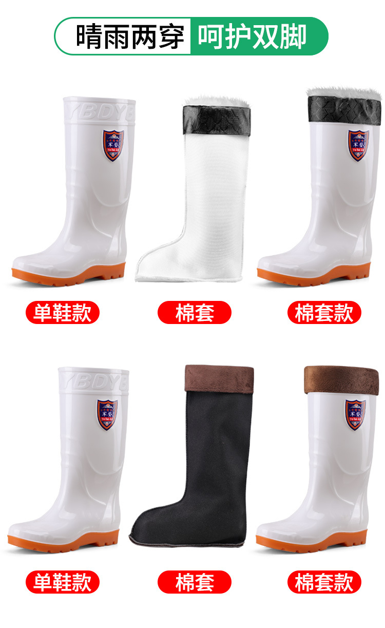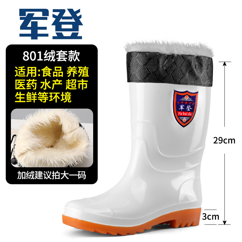 중간 높이 PVC 소재 밑창 작업용 식품 공장용 흰색 방수화, 안감 기모 처리, 방수, 방유, 남성용 미끄럼 방지 주방 장화스토어 가기