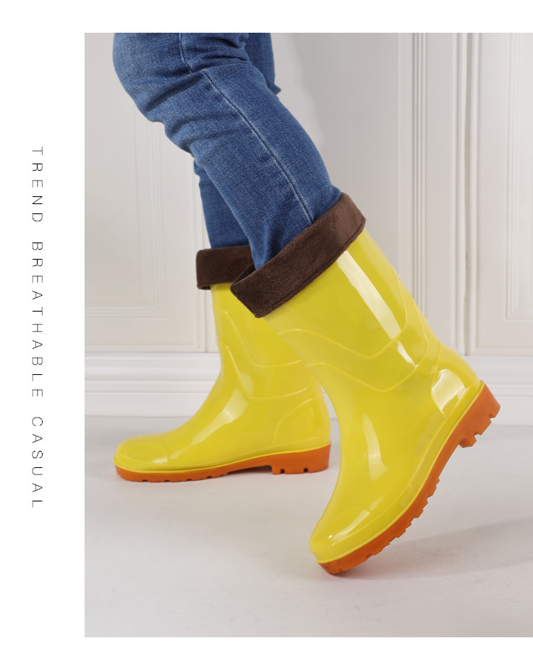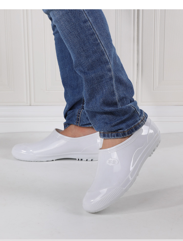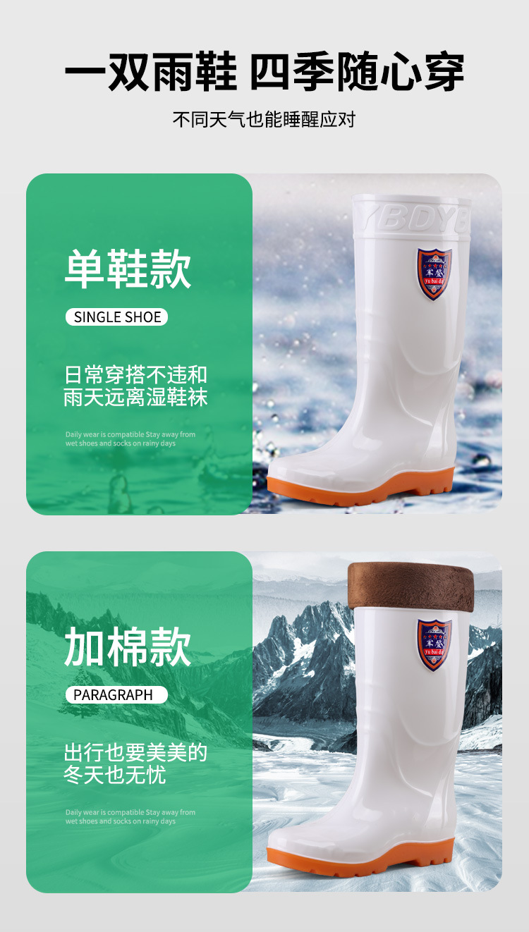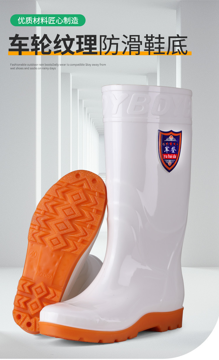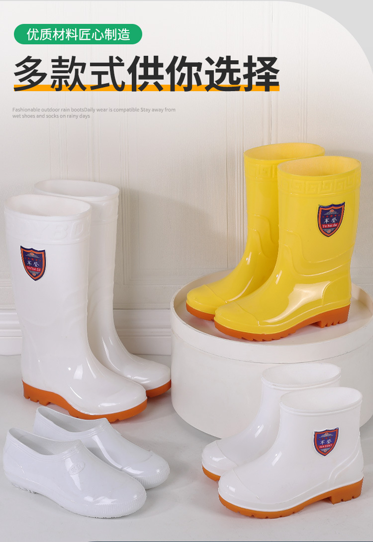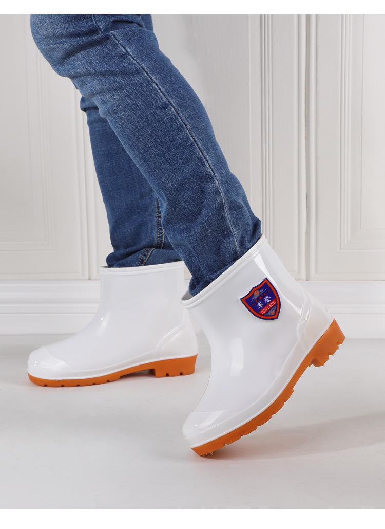 중간 높이 PVC 소재 밑창 작업용 식품 공장용 흰색 방수화, 안감 기모 처리, 방수, 방유, 남성용 미끄럼 방지 주방 장화스토어 가기