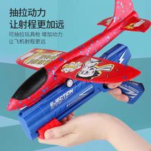 儿童弹射枪泡沫飞机网红手抛回旋发射纸飞天滑翔机户外玩具枪男孩