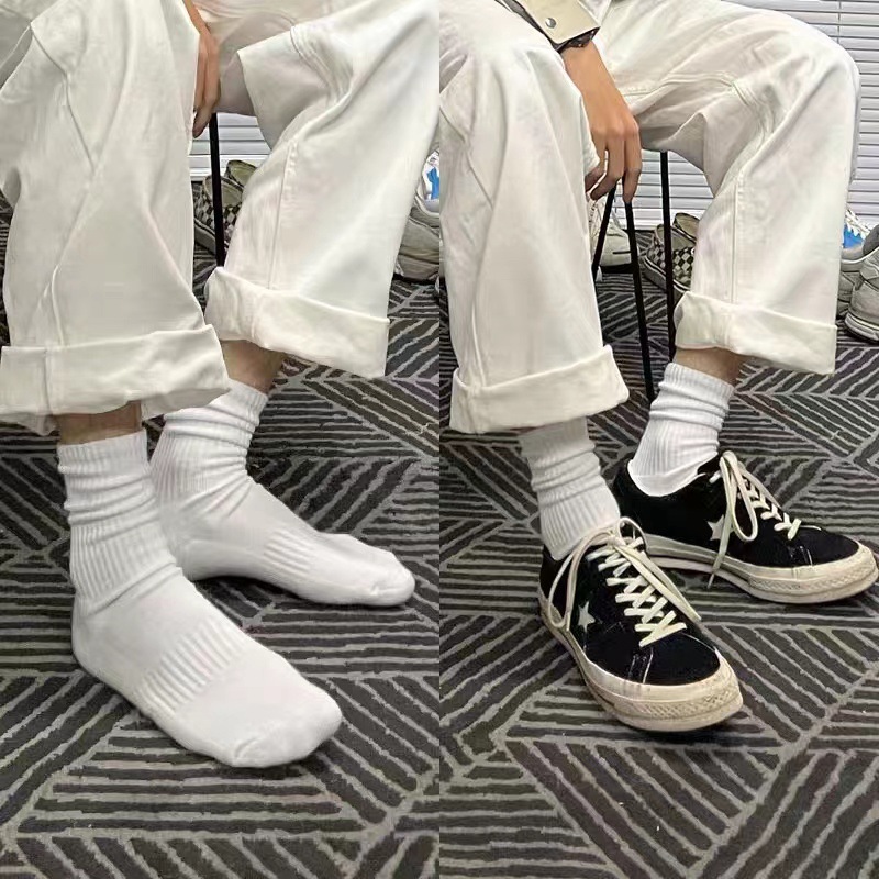 봄과 여름 얇은 단색 양말 미드 튜브 유행 양말 일본 두꺼운면 양말 긴 튜브 간단한 흑백 조커 도매 세대스토어 가기