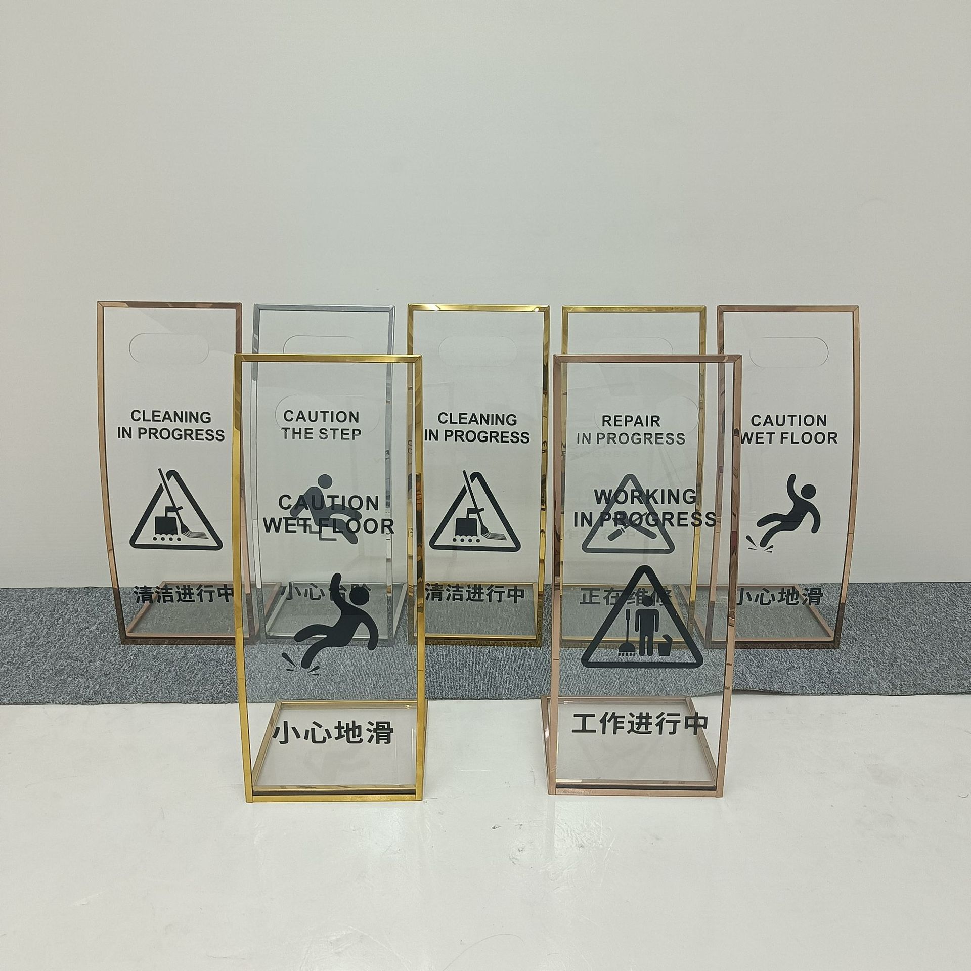 스테인레스 스틸 빌보드 L 자형 두꺼운 아크릴 신중하게 미끄러운 표지판 은행 쇼핑몰 유지 보수 경고스토어 가기
