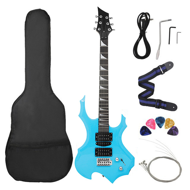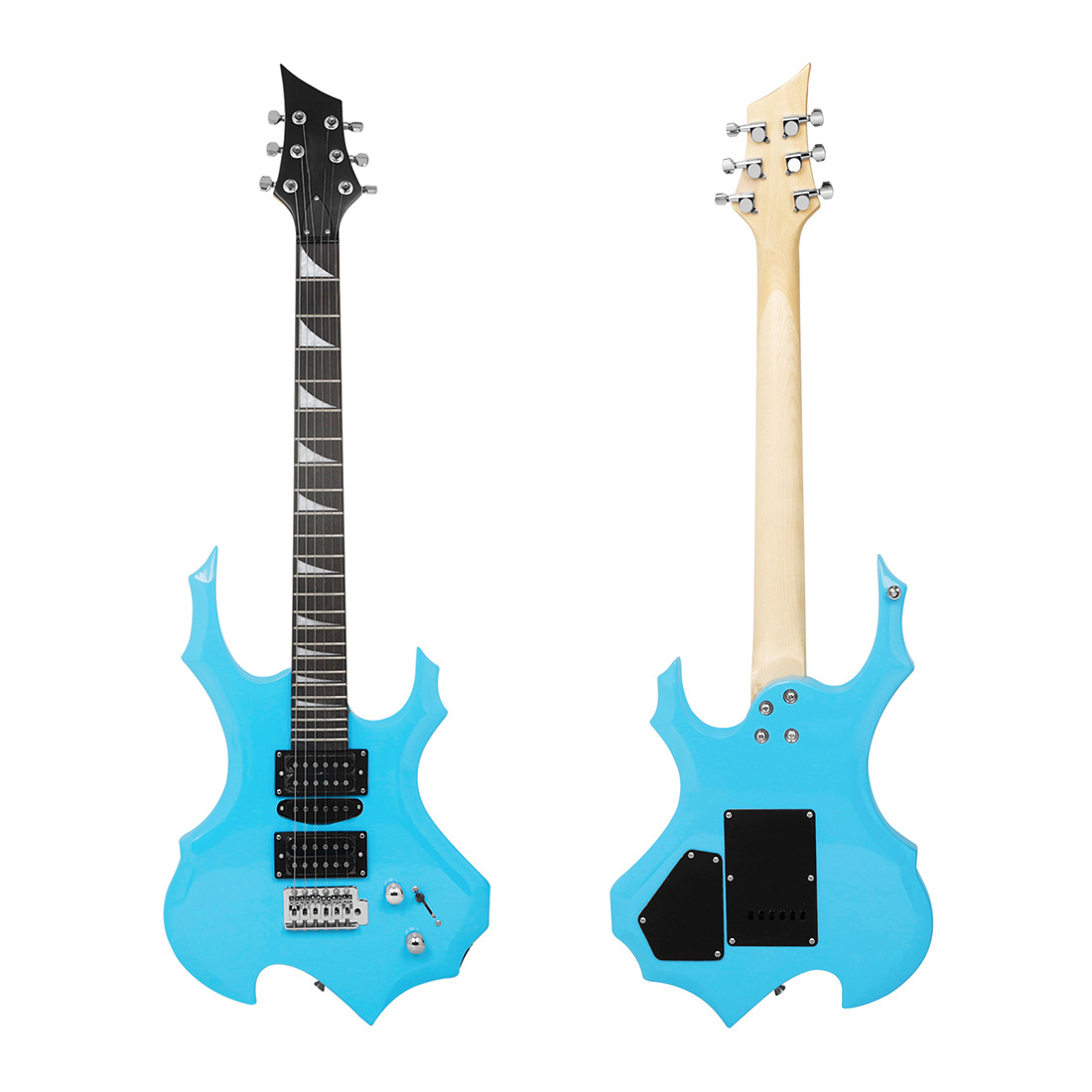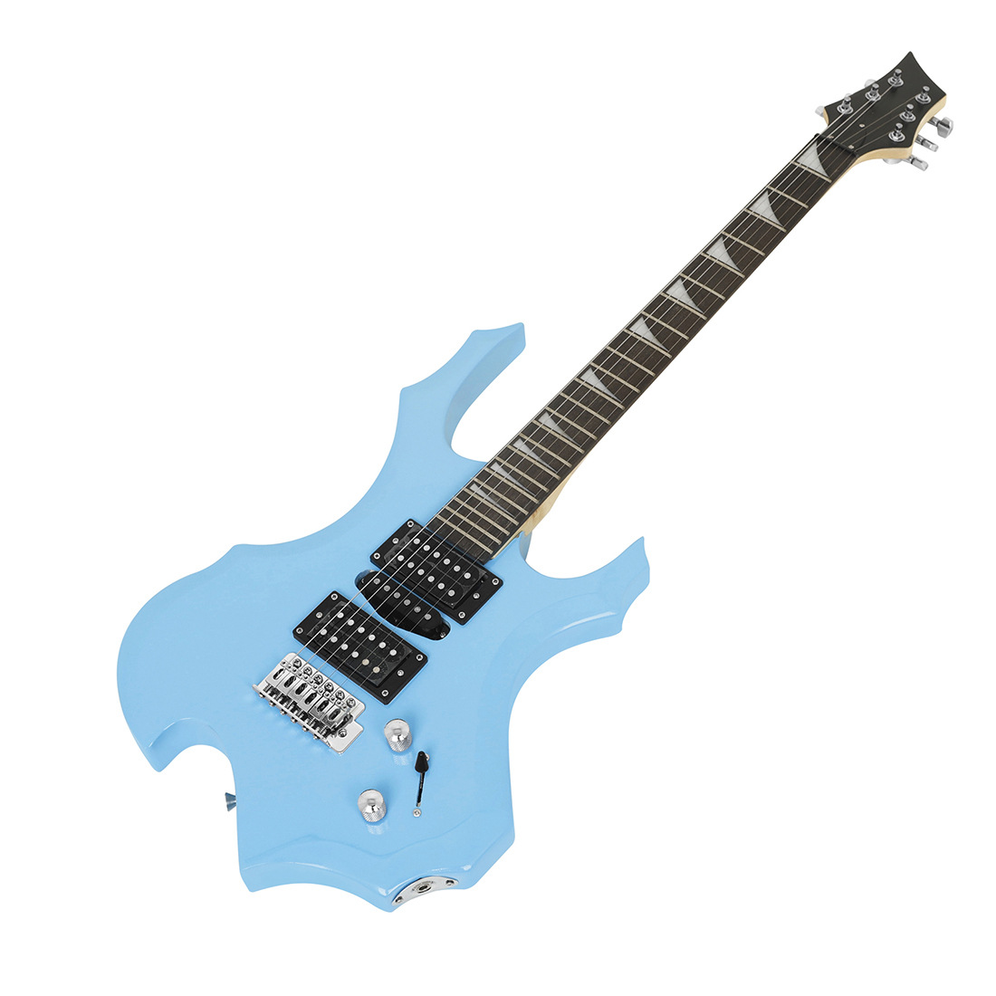 用途/优点:火焰的形状奔放的外形 十足的摇滚劲让人热血沸腾 。玫瑰实木制造的指板,配合优质椴木制造的琴体,手感舒适,耐久度高,整体设计美观流畅,使用感十足
