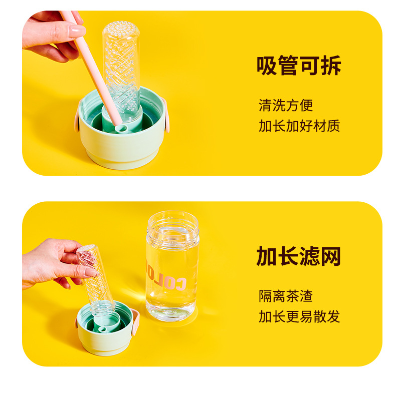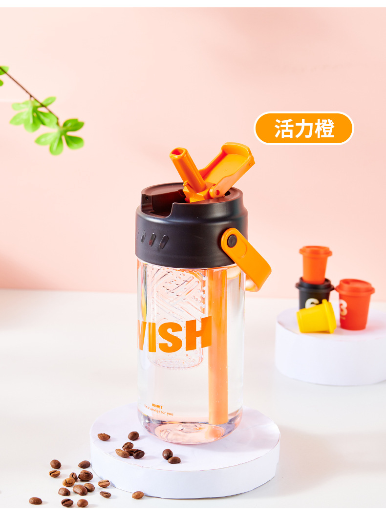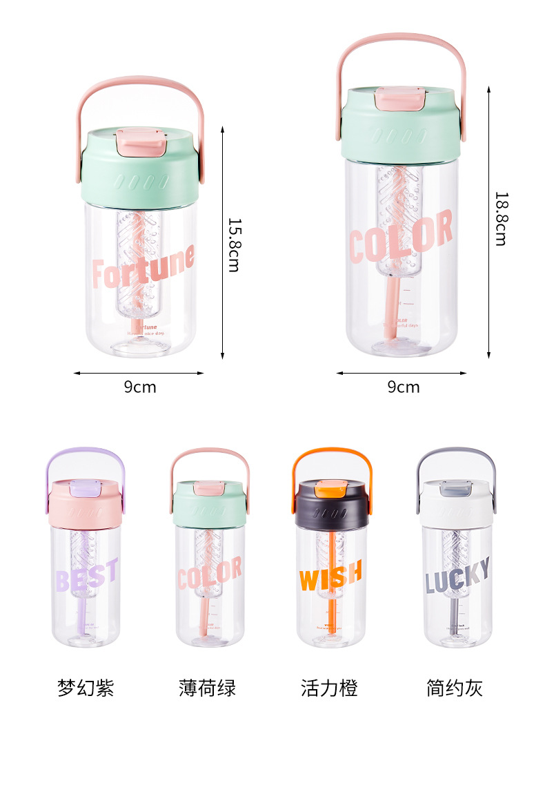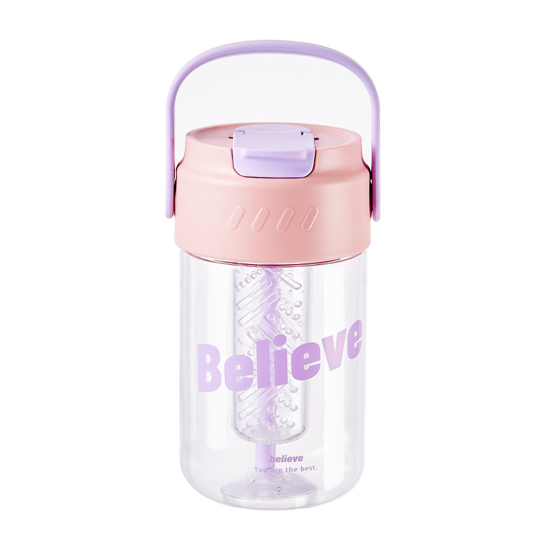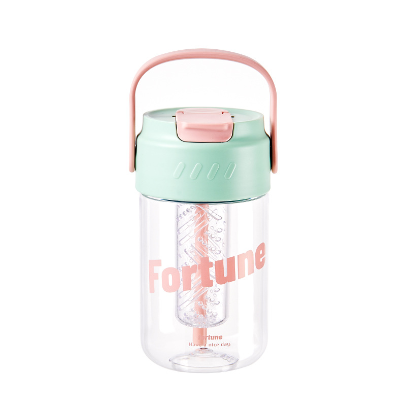 폭발 손잡이 물 컵 남자와 여자의 스포츠 휘트니스 흡입 튜브 컵 여자의 건강 꽃 차 컵 차 여과기 플라스틱 물 컵