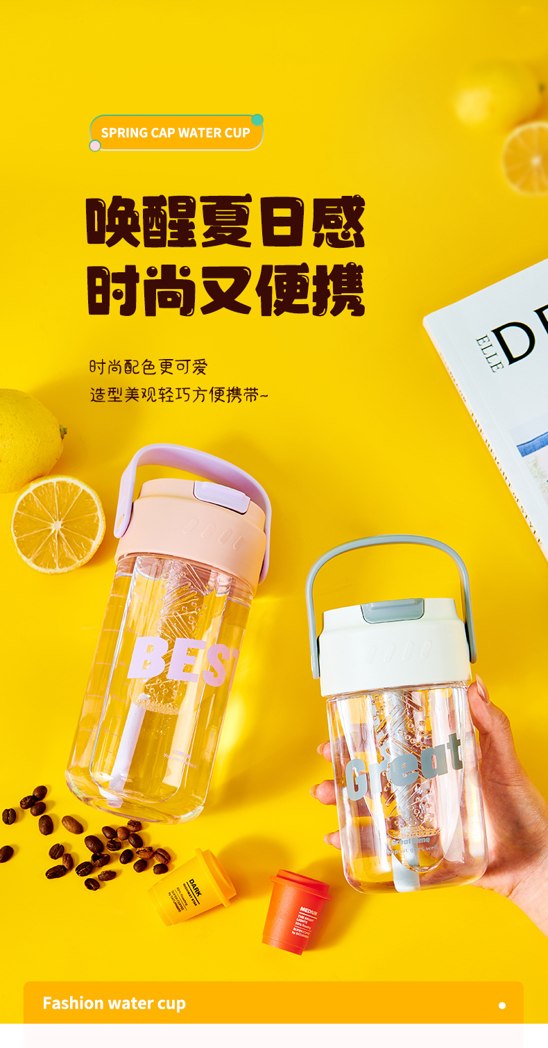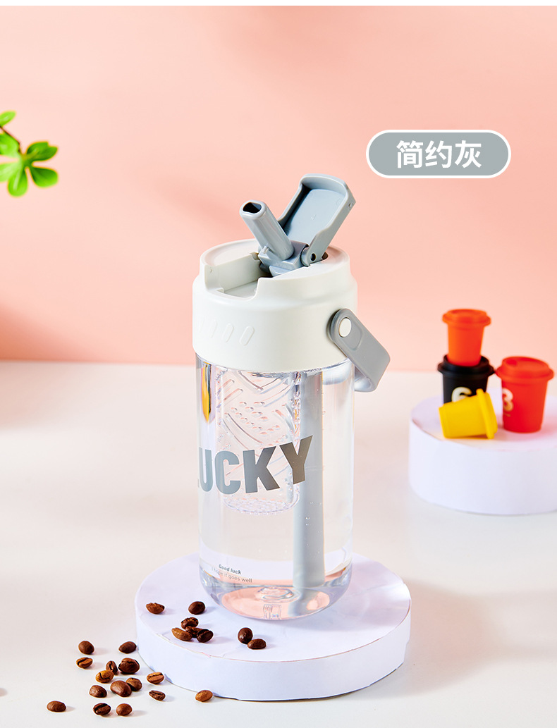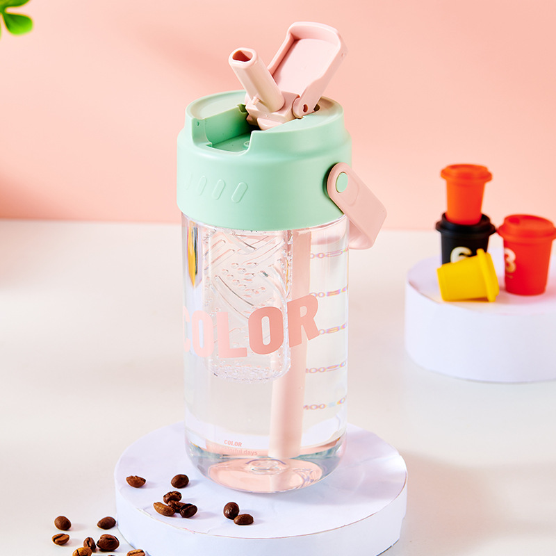 폭발 손잡이 물 컵 남자와 여자의 스포츠 휘트니스 흡입 튜브 컵 여자의 건강 꽃 차 컵 차 여과기 플라스틱 물 컵스토어 가기