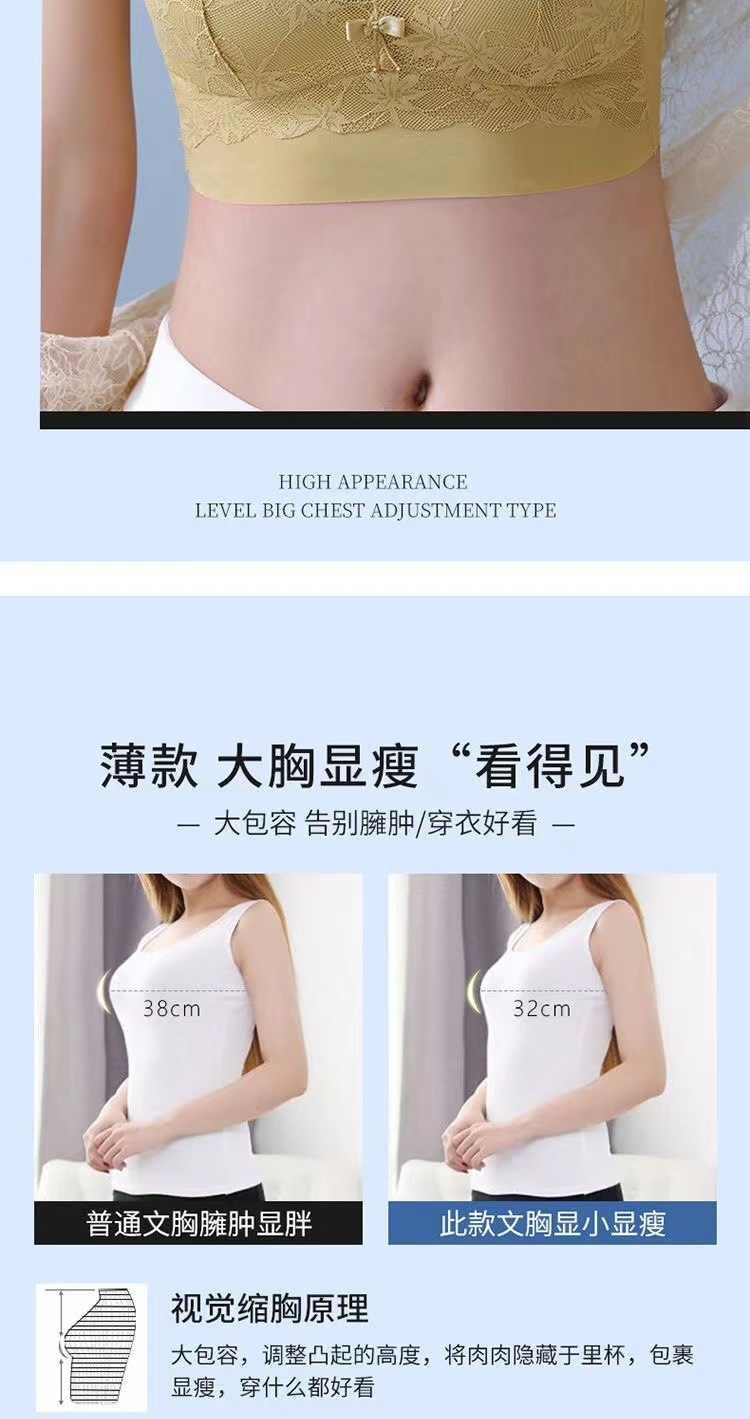 여름 레이스 포장 가슴 얇은 큰 가슴 작은 붕괴 액세서리 유방 모여있다 아니 강철 반지 조정 가능한 플러스 사이즈 브래지어 조끼 여성용스토어 가기