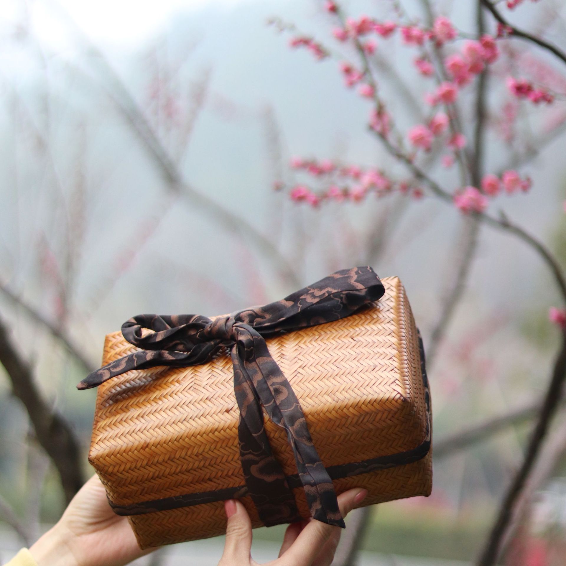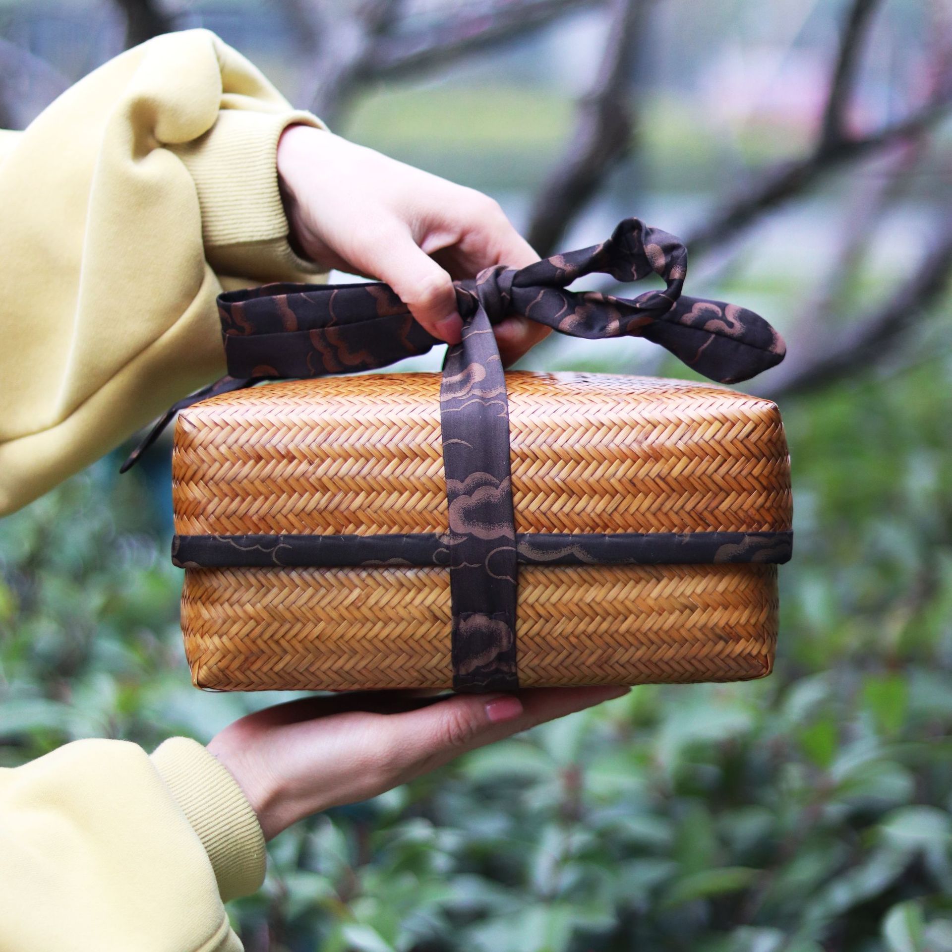 뚜껑이 있는 대나무 차도구 보관함, 수제 차 포장 선물 상자, 데스크탑 정리 보관 용품, 대나무 제품 가방스토어 가기