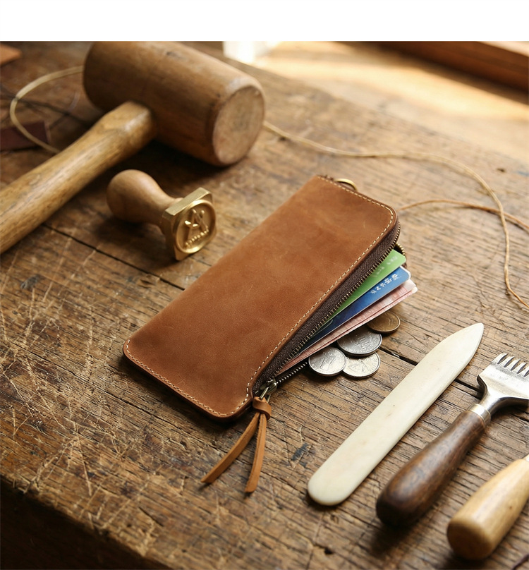 첫 번째 레이어 소가죽 벨트 지퍼 지갑이있는 남성용 긴 정품 가죽 울트라 씬 지갑 청소년 단순 레트로 미친 말 가죽 지갑스토어 가기