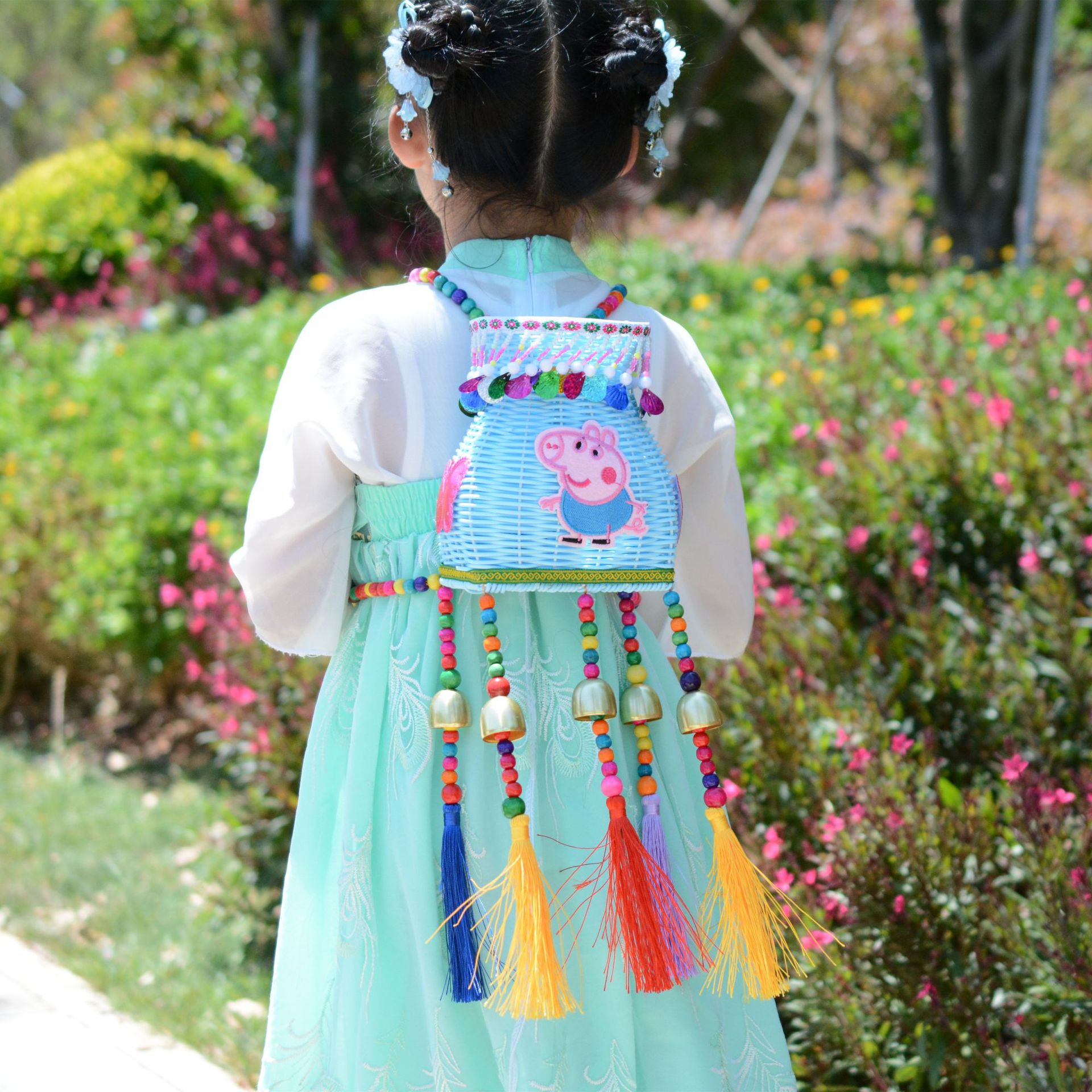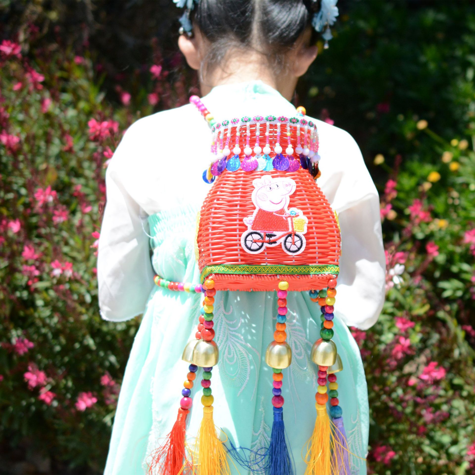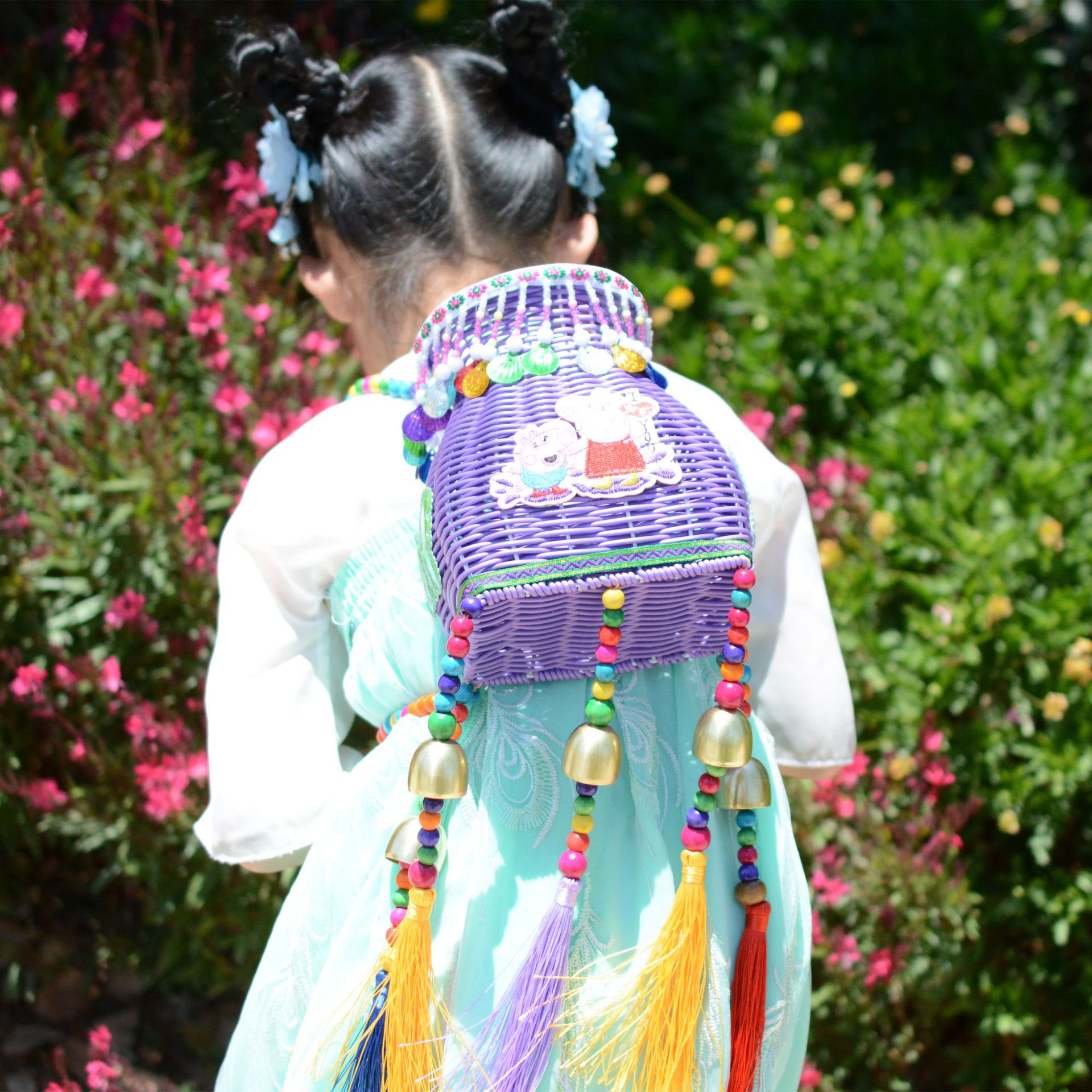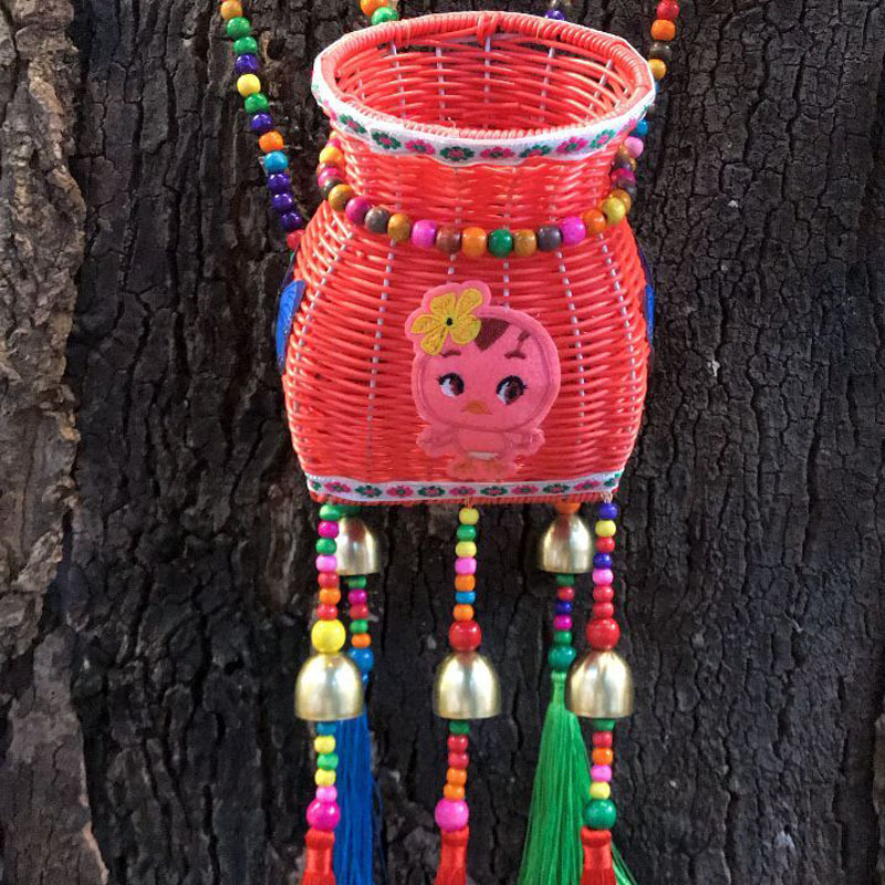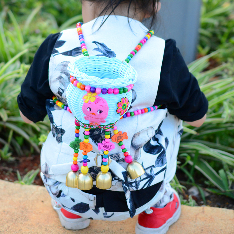 小背篓风铃厂家直供儿童小鱼篓爆款幼儿园挂饰双肩背藤编篓挂件