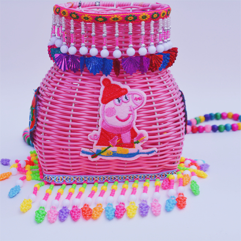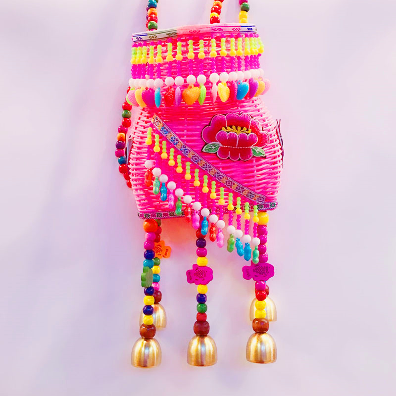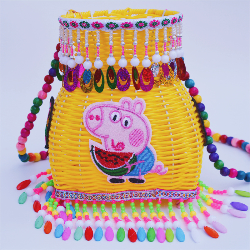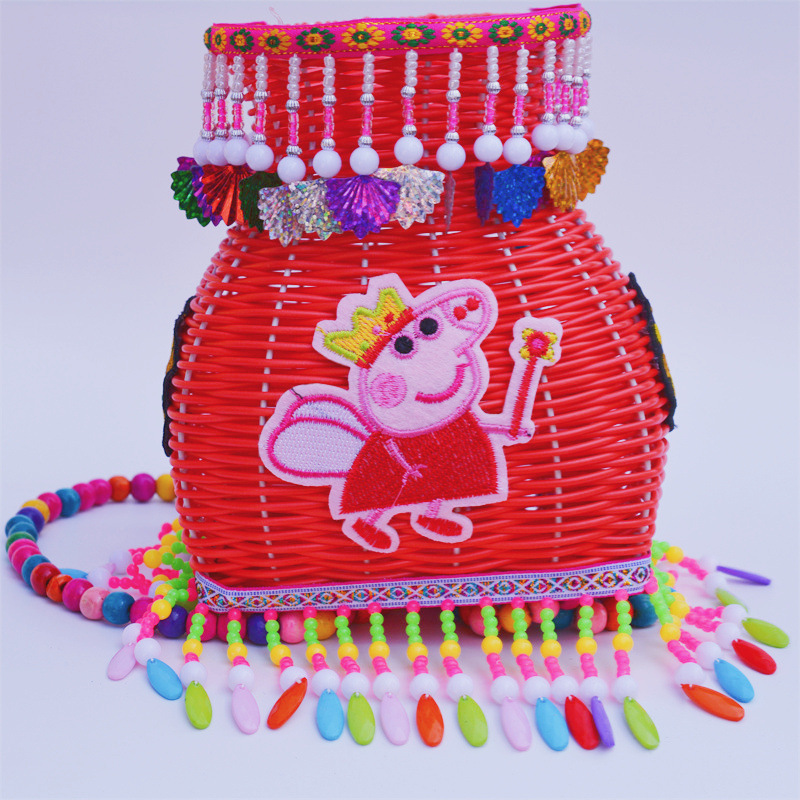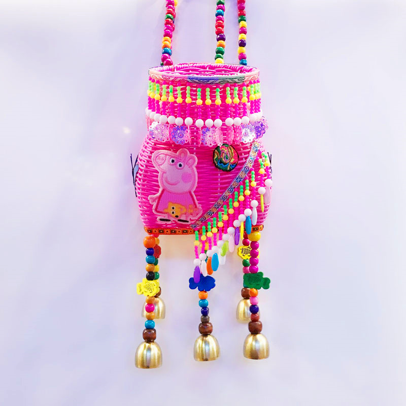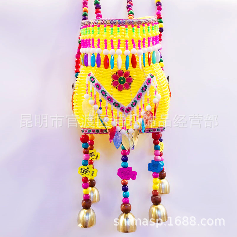小背篓风铃厂家直供儿童小鱼篓爆款幼儿园挂饰双肩背藤编篓挂件