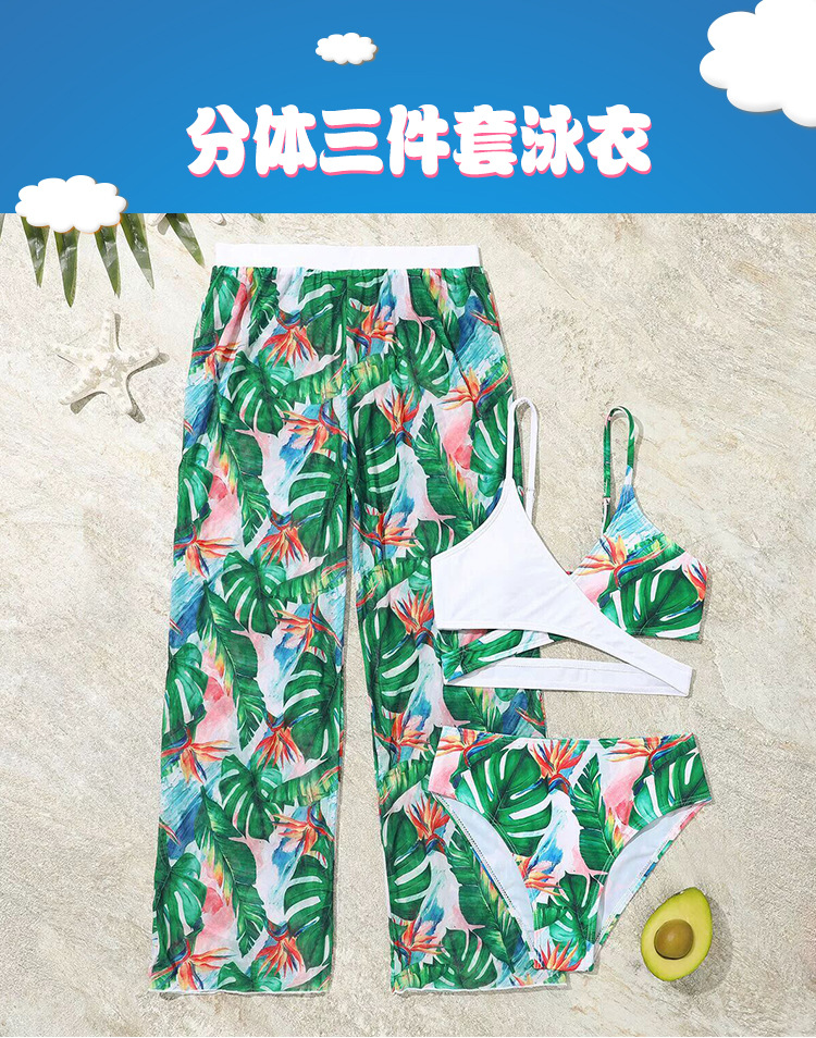공장 재고 분할 인쇄 학생 3 피스 바지 여자 수영복 크로스 국경 외국 무역 어린이 수영복 도매스토어 가기