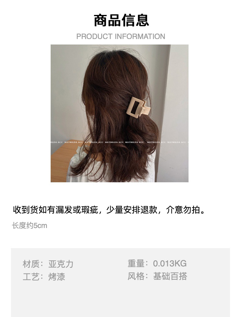 국경 간 무광택 사각형 그립 클립 스몰 사이즈 하프 타이 조커 헤어 그립 아크릴 상어 클립 머리 머리핀 여성 도매스토어 가기
