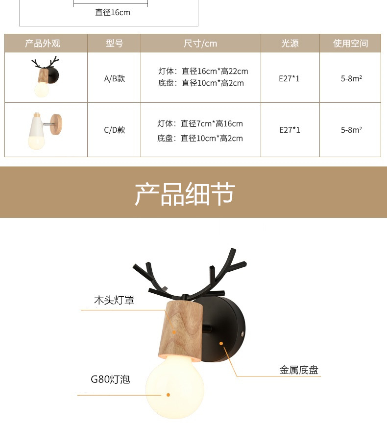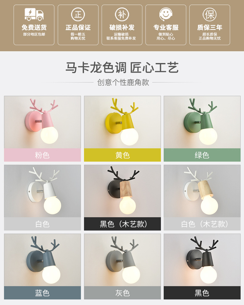 북유럽 사슴뿔 벽등 LED 마카롱 모던 심플 침대 옆등 벽등 침실 복도등 창의적 디자인