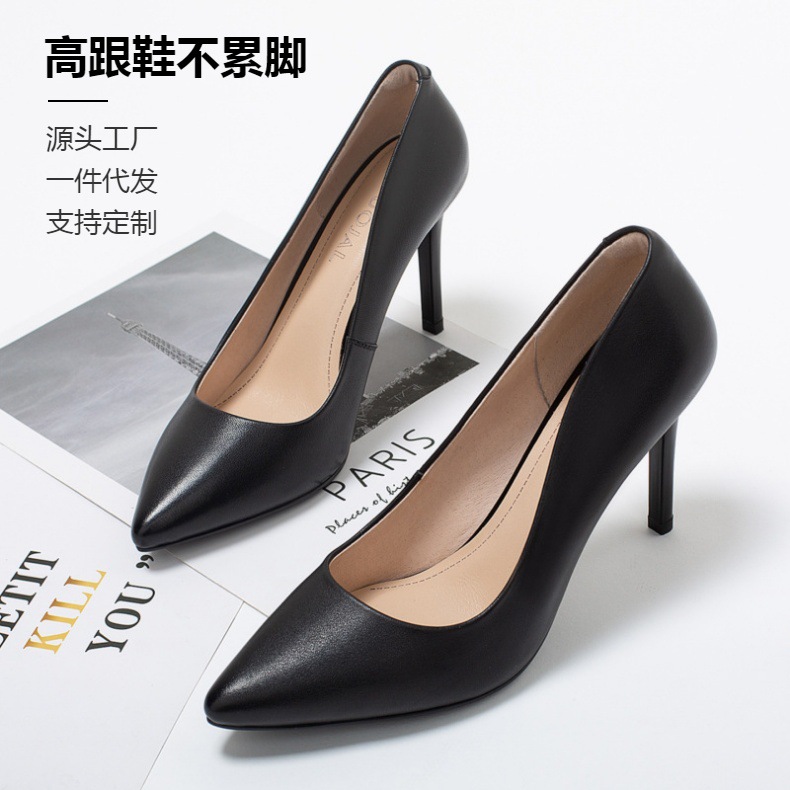 여성용 싱글 슈즈, 천연 가죽, 편안한 전문 여성화, 누드 컬러 하이힐, 발이 피곤하지 않은, 포인티드 토 스틸레토 힐, 여성용 블랙 통근 슈즈스토어 가기