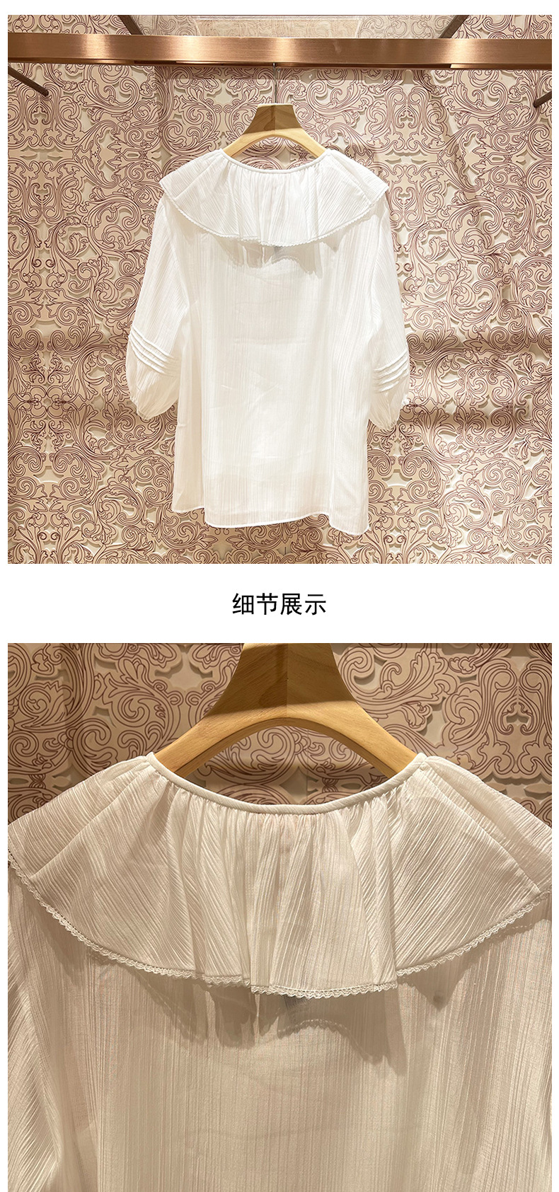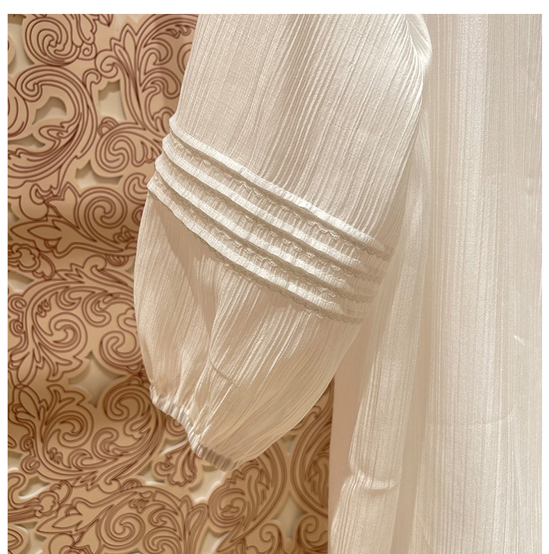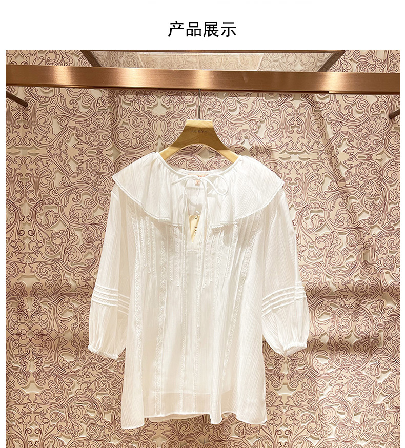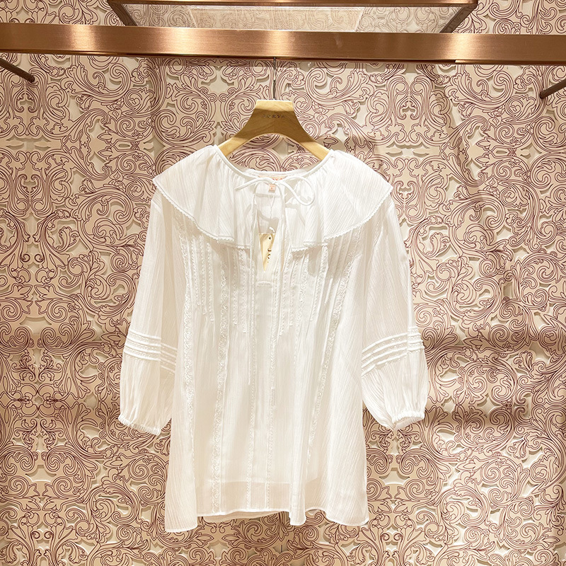 봄 2023 새로운 로터스 칼라 레이스업 스티칭 랜턴 슬리브 달콤한 쉬폰 셔츠 탑 여성복 P109101B스토어 가기