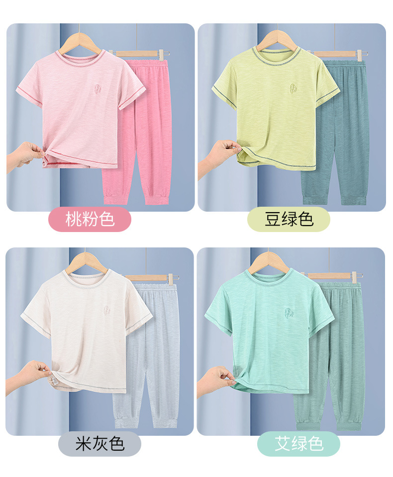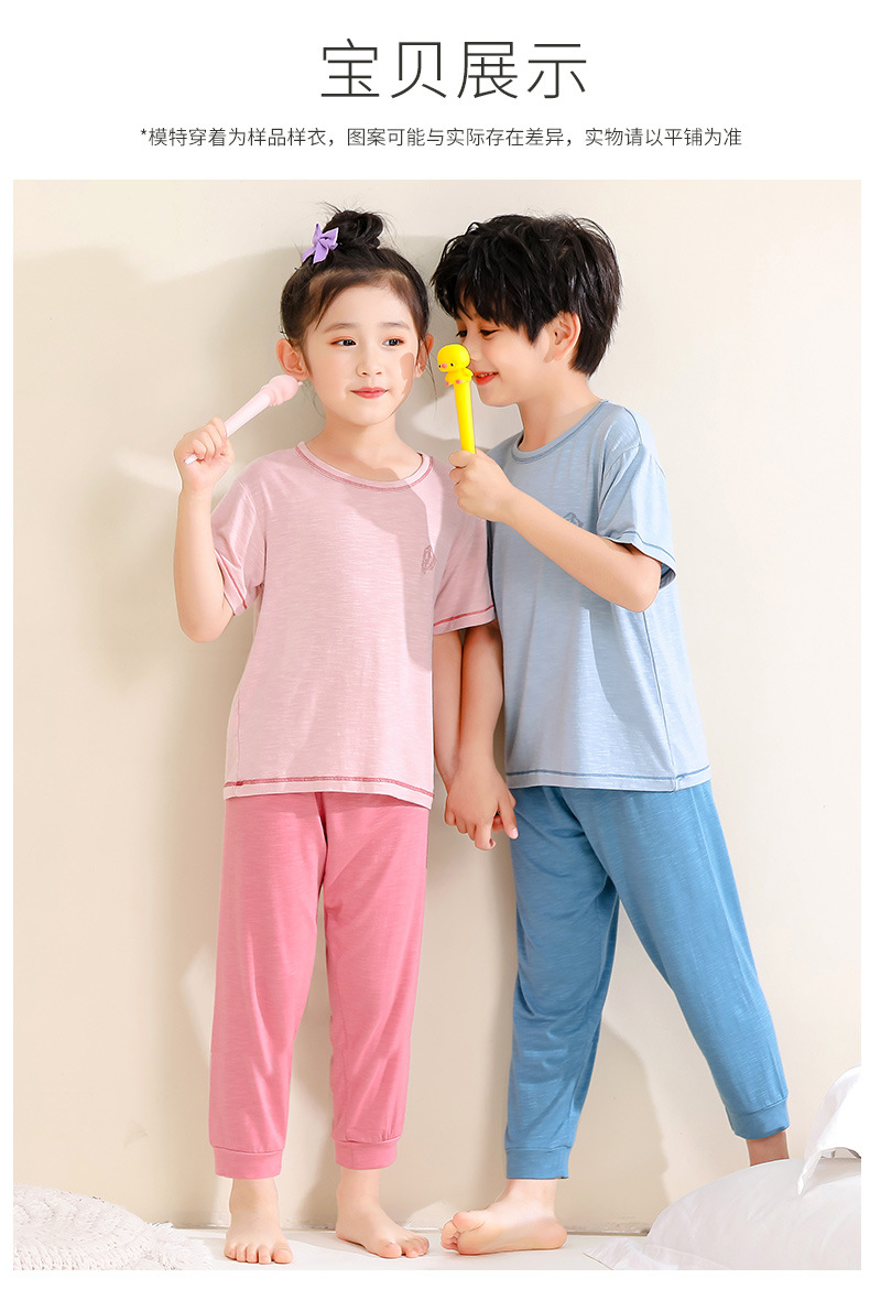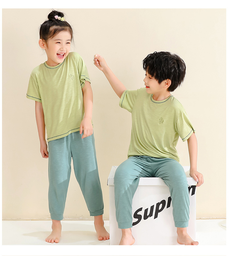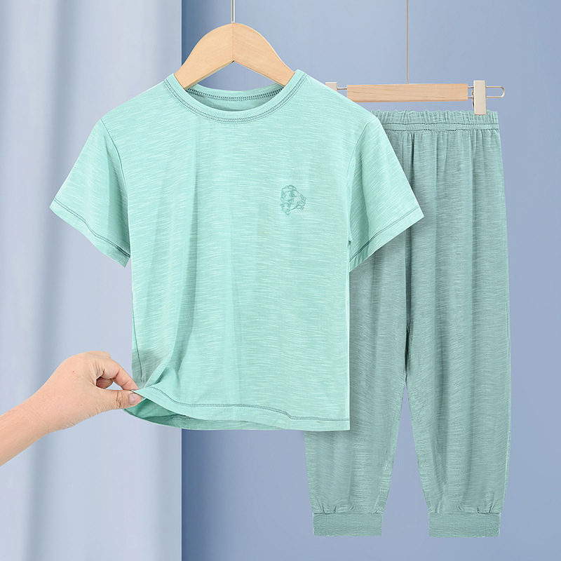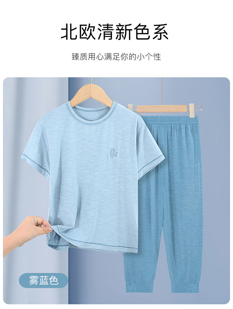 소년을위한 어린이 잠옷 여름 얇은 어린이 모달 아이스 실크 여자 부모-자식 세트