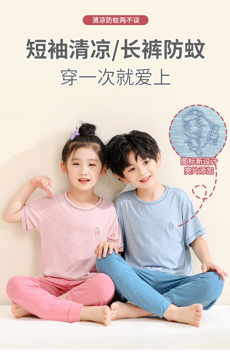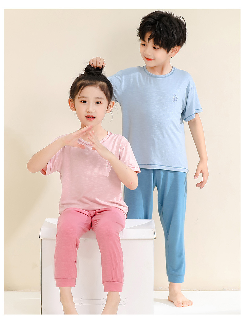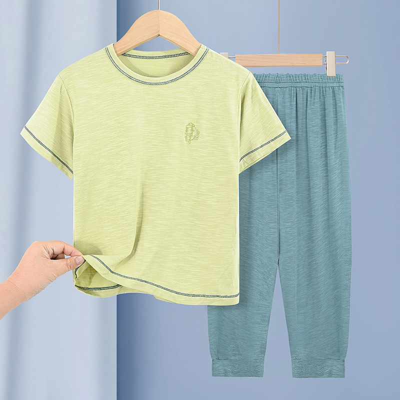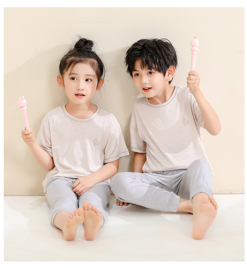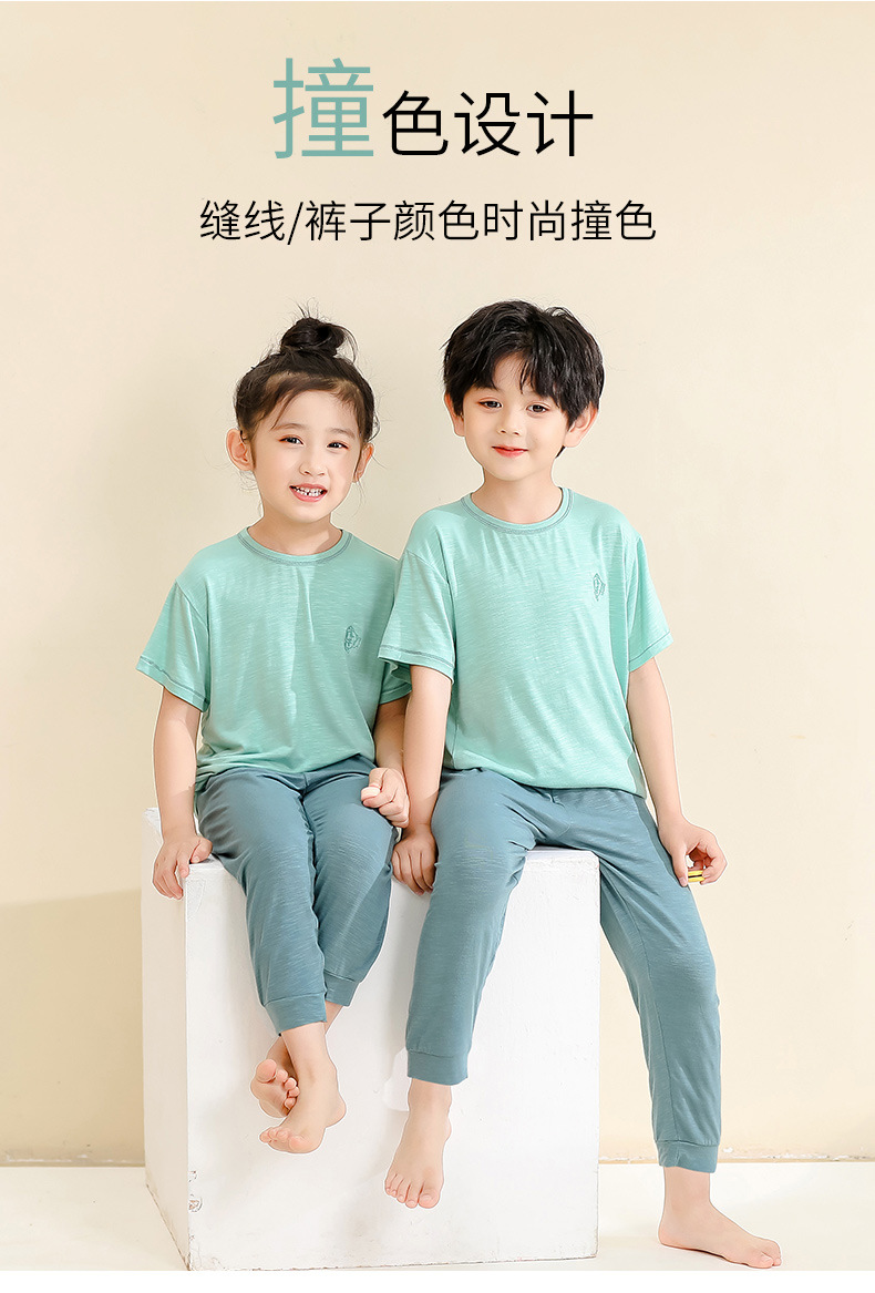 소년을위한 어린이 잠옷 여름 얇은 어린이 모달 아이스 실크 여자 부모-자식 세트