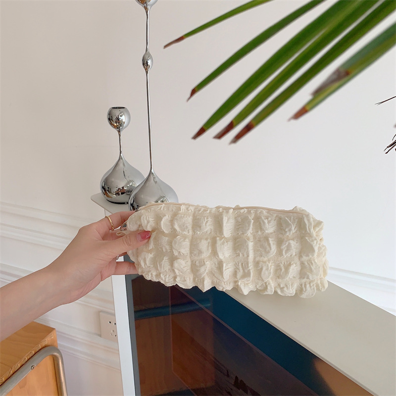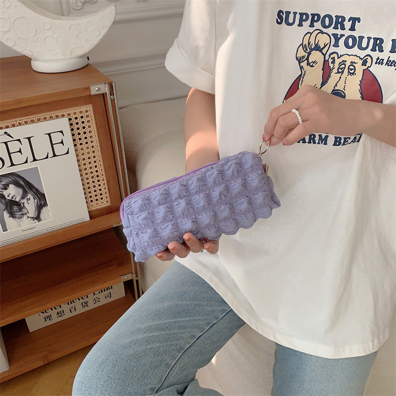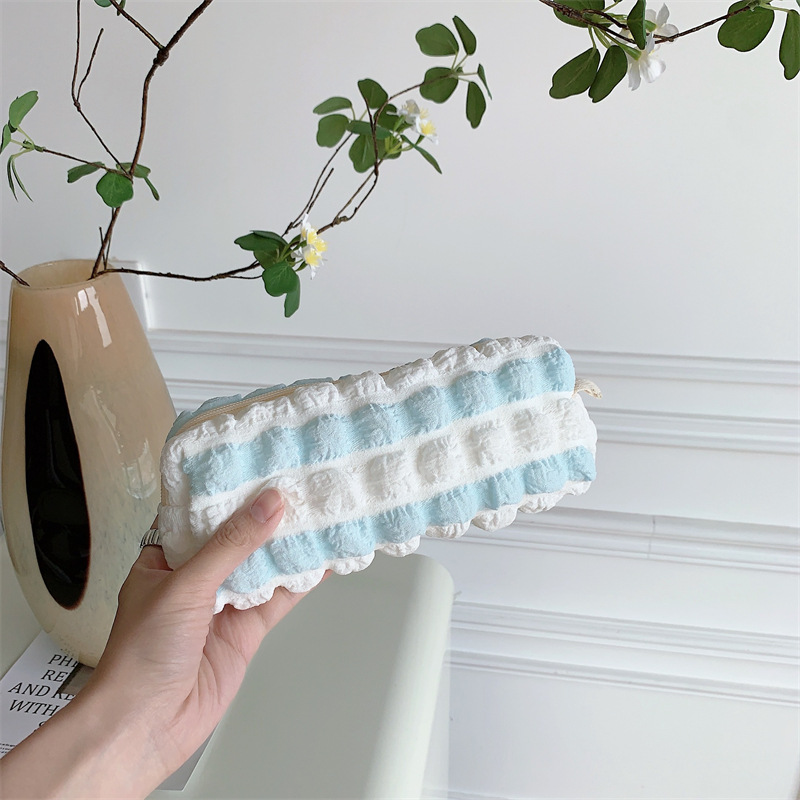 32241 소프트 소프트 필통 시어서커 문구 가방 소녀의 심장 보관 가방 주름 화장품 가방 여성스토어 가기