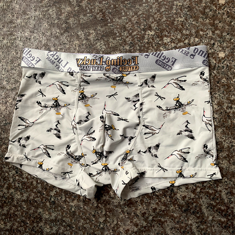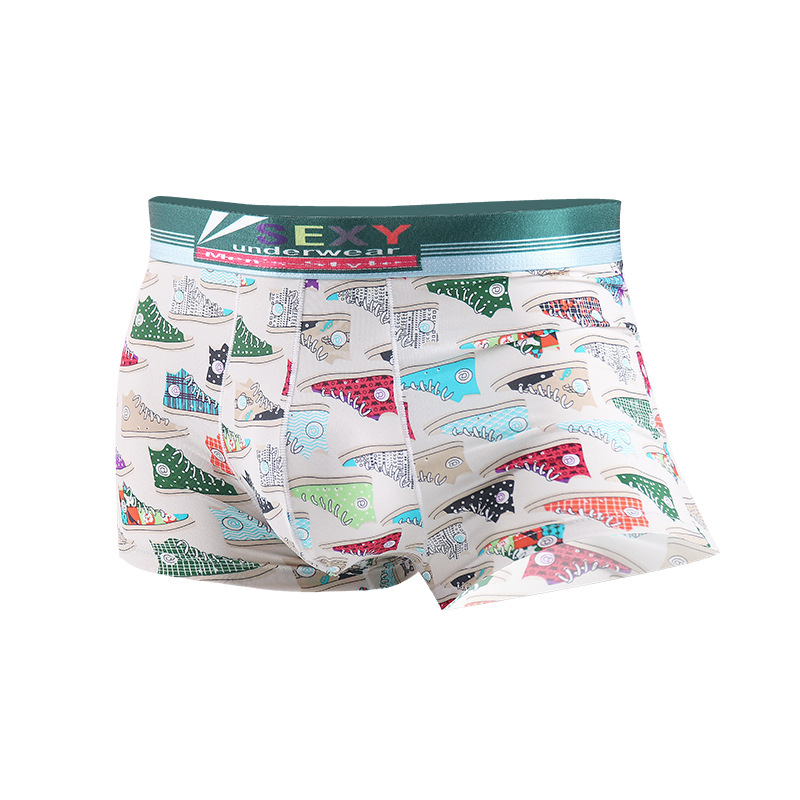 2023 새로운 남성용 아이스 실크 속옷 남성용 항균 속건 복서 여름 얇은 개인화 인쇄 복서스토어 가기