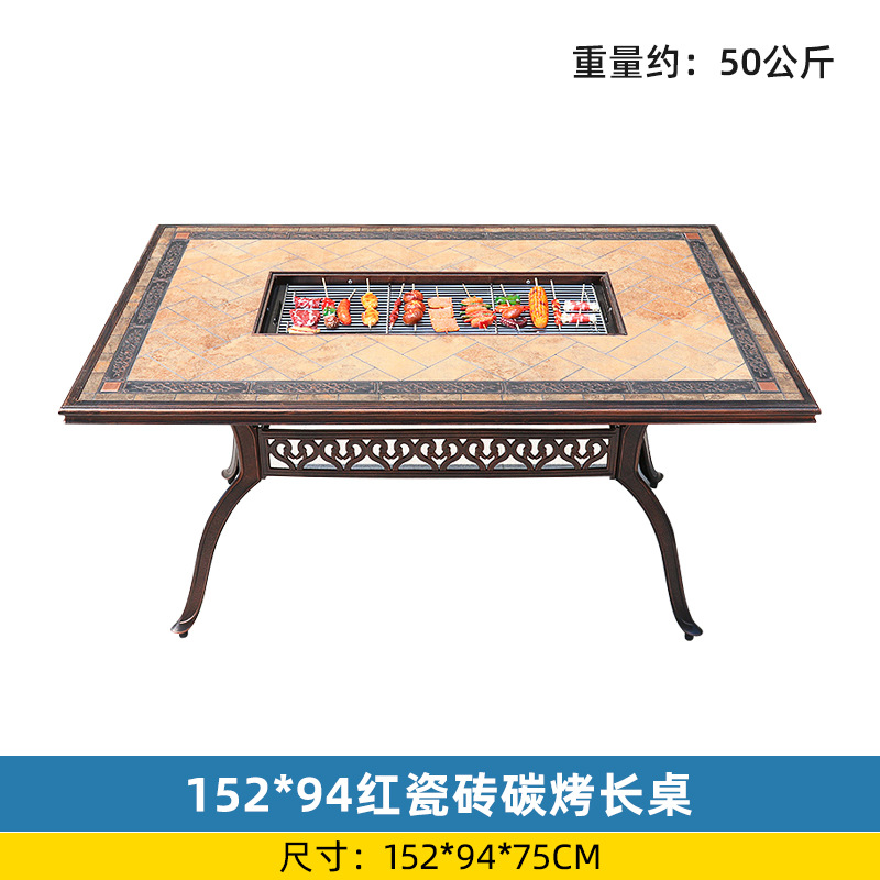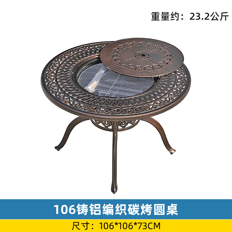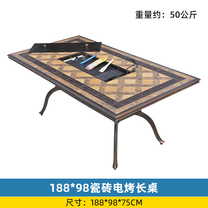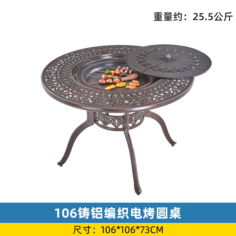 야외 바베큐 테이블과 의자 안뜰 캐스트 알루미늄 무연 전기 그릴 숯 그릴 가든 테라스 야외 철 캐주얼 테이블 조합스토어 가기