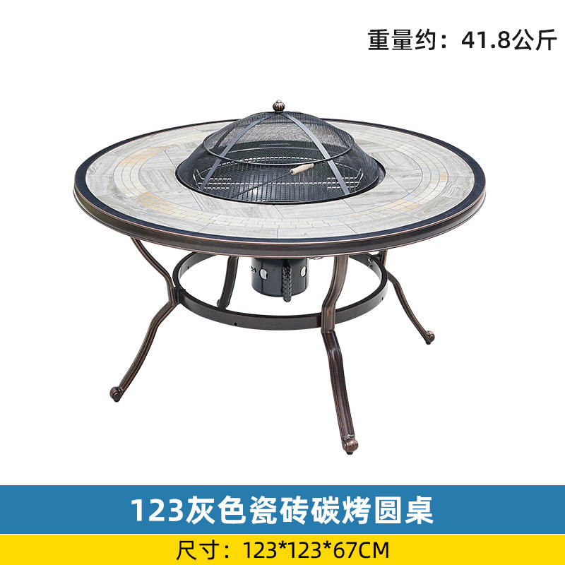 • 123cm 회색 타일 탄소 구이 원형 테이블