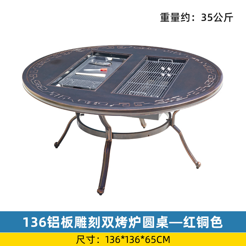 • 136cm 알루미늄 판 새겨진 이중 오븐 원형 테이블-적색 구리