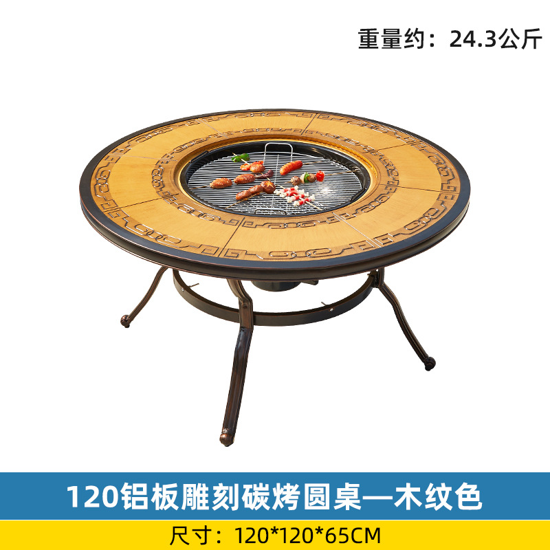 • 120cm 알루미늄 플레이트 새겨진 탄소 구이 원형 테이블-우드 그레인 색상