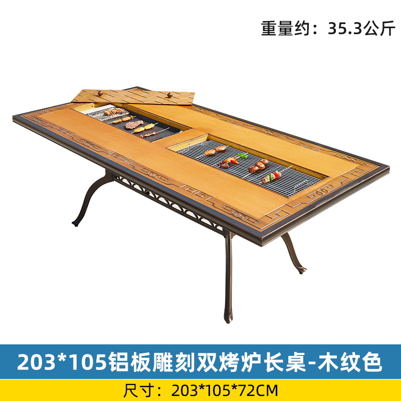 • 150*90 알루미늄 판 조각 탄소 그릴 긴 테이블-우드 그레인 색상