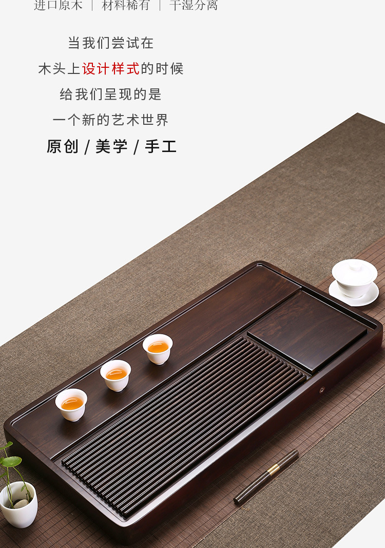 흑단 티 트레이 가정용 티 홀더 전체 블록 천연 단단한 나무 티 테이블 대형 스몰 사이즈 차 차 쿵푸 차 세트 간단한 트레이
