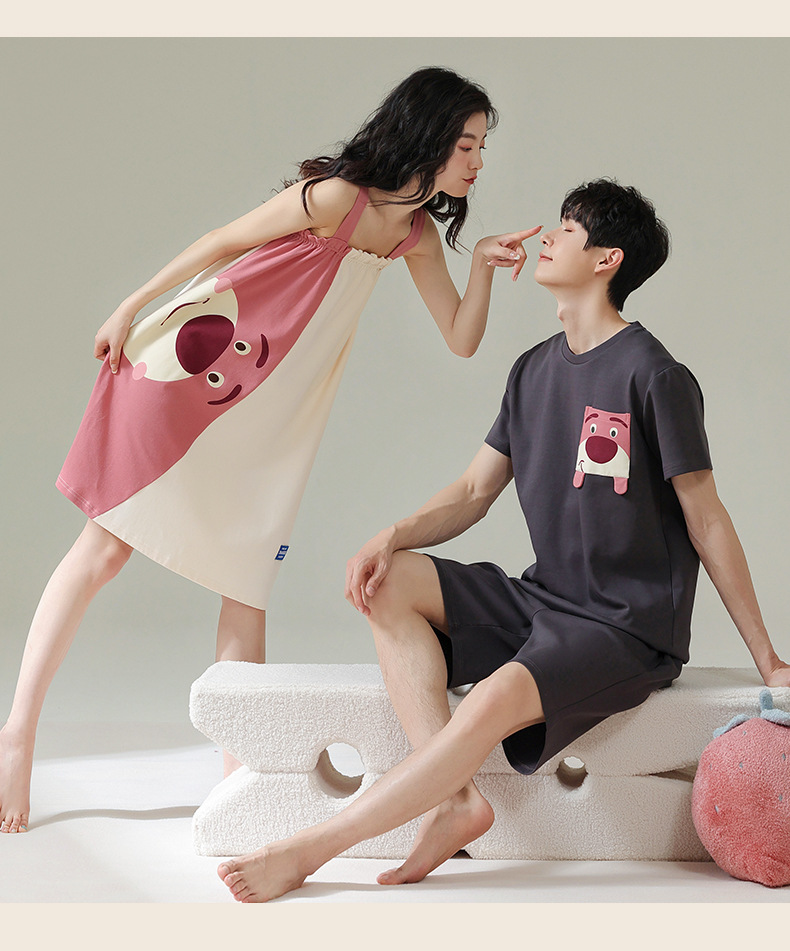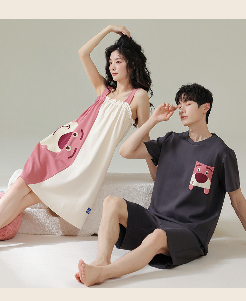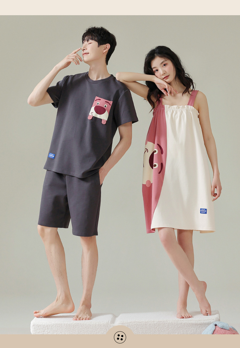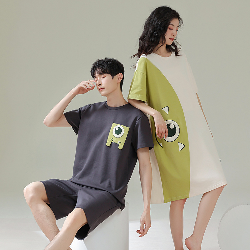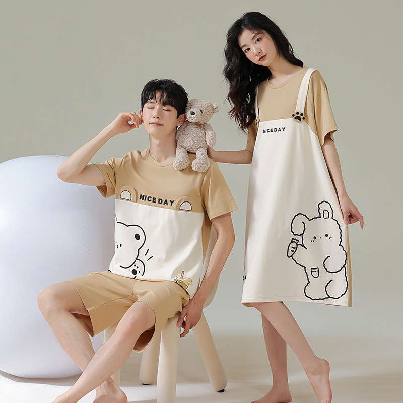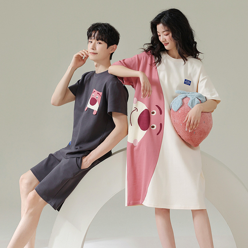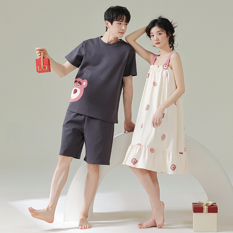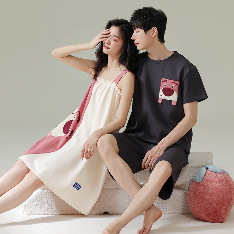 실제 품질의 커플 잠옷 여름용 순면 반팔 슬립 드레스 여성용 면 홈웨어 틱톡 배송스토어 가기