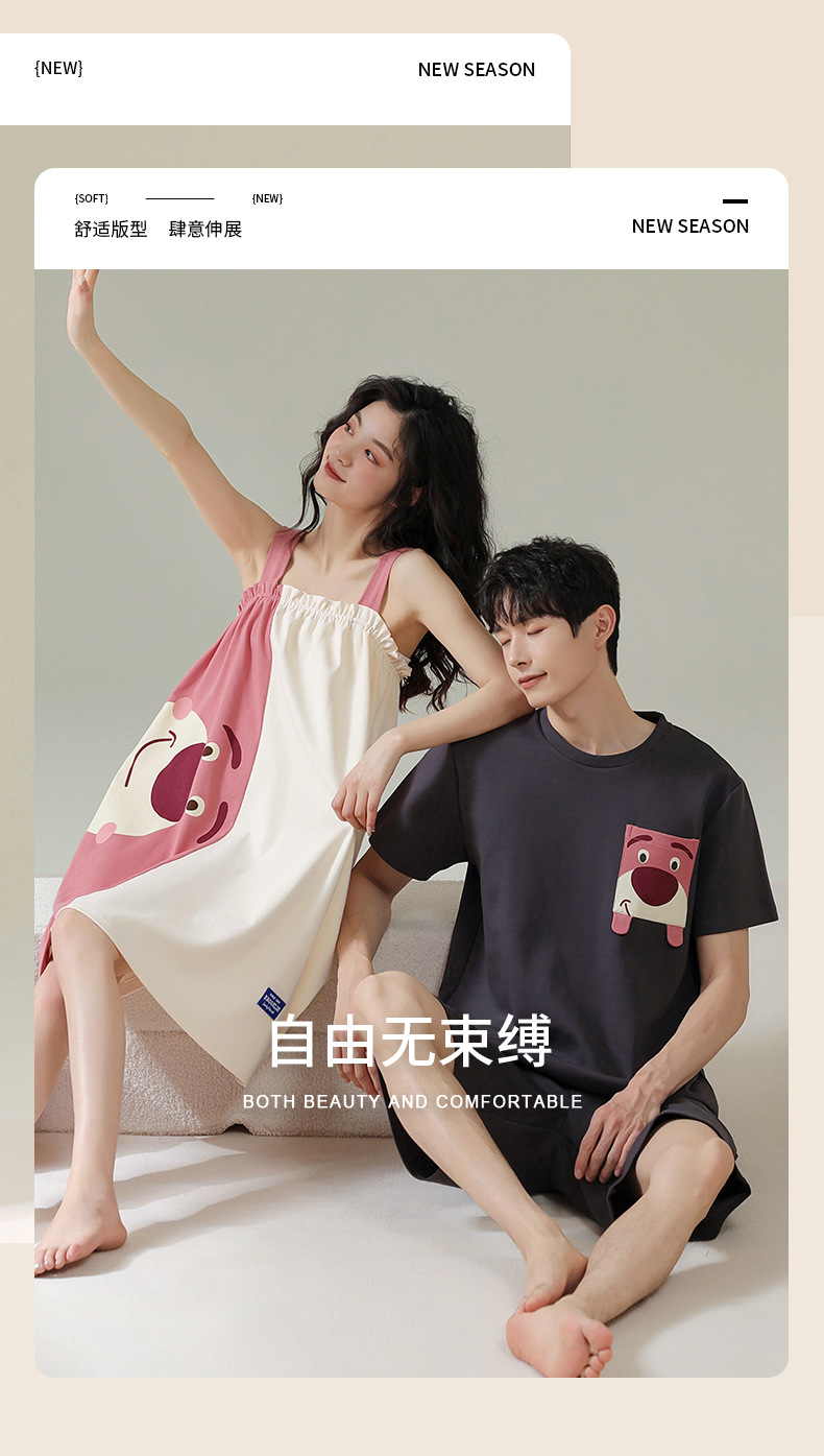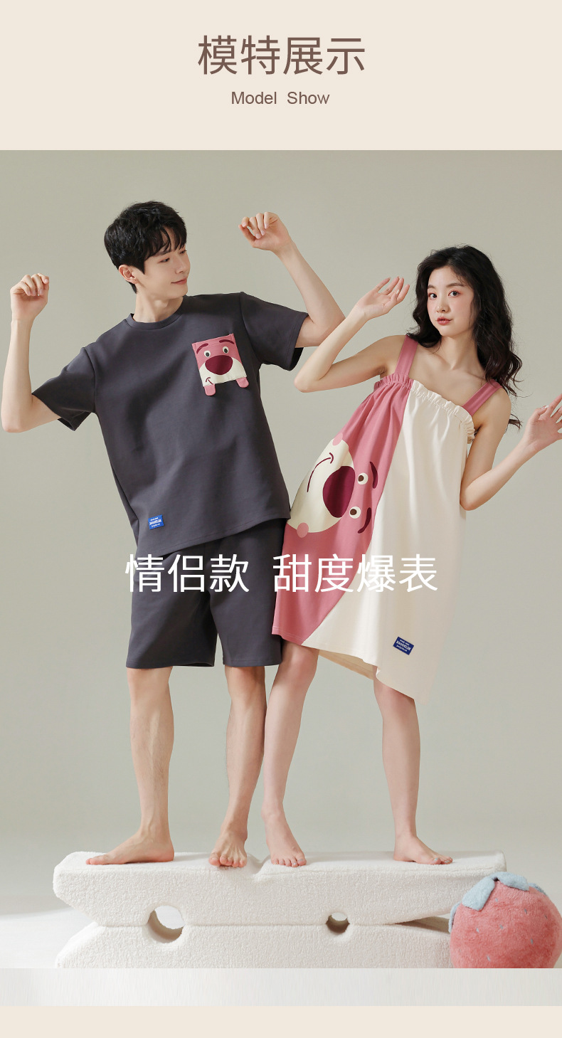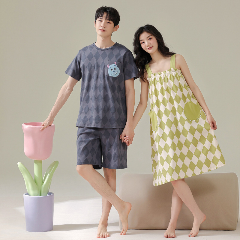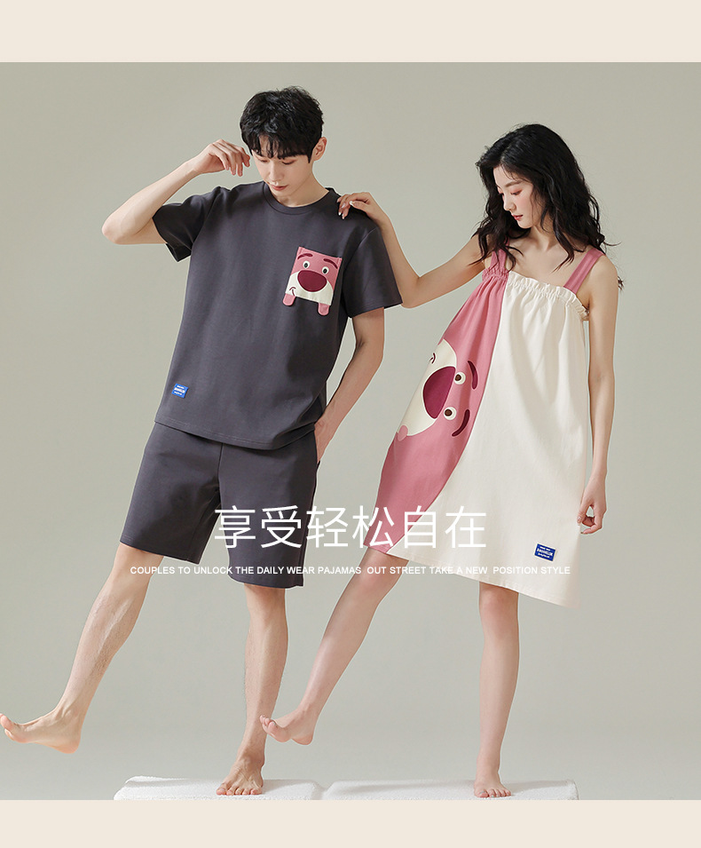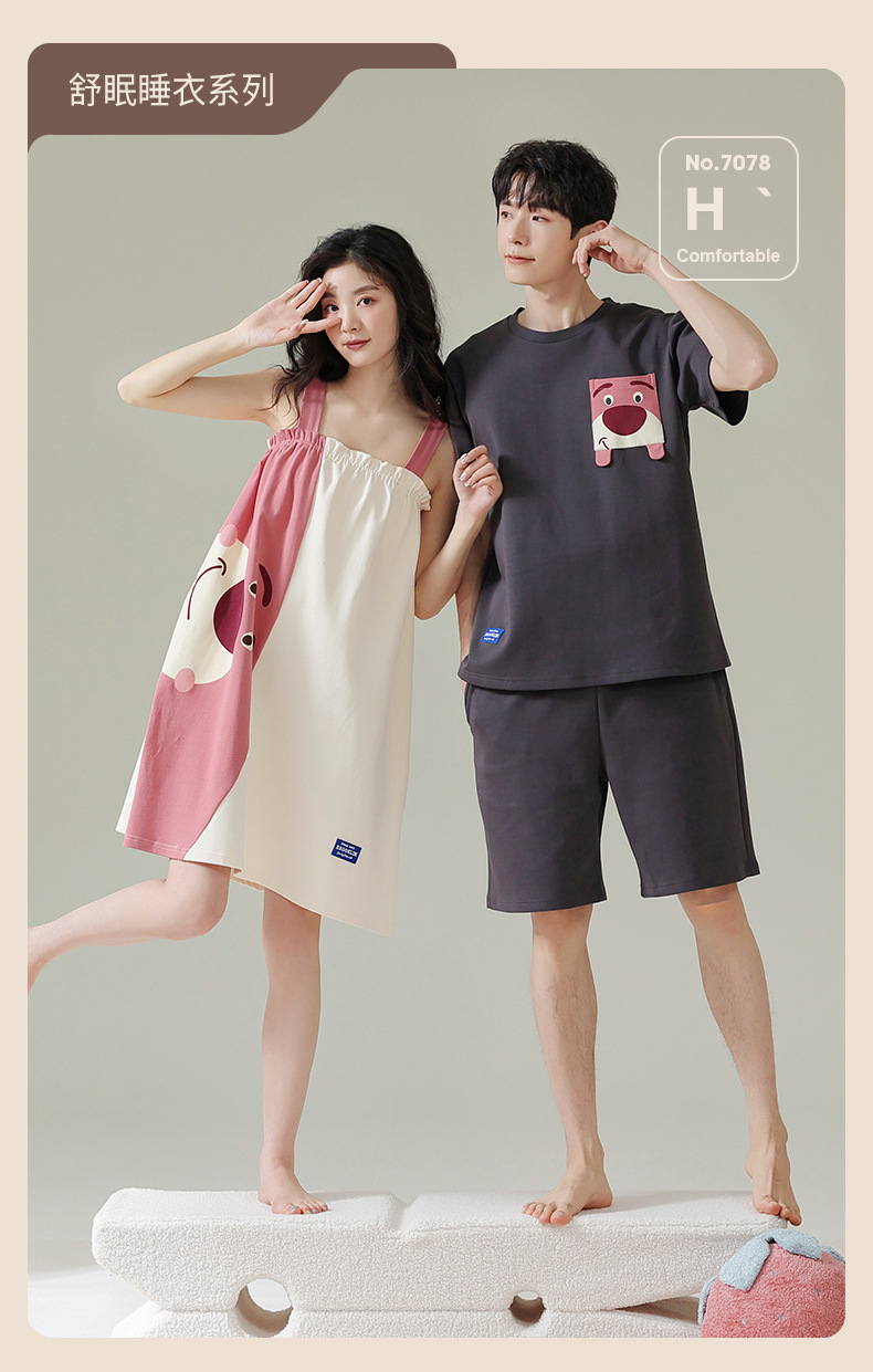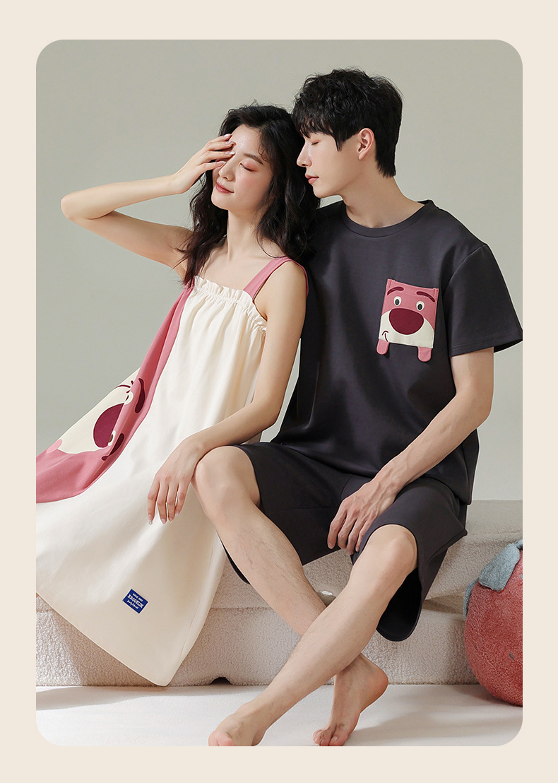 실제 품질의 커플 잠옷 여름용 순면 반팔 슬립 드레스 여성용 면 홈웨어 틱톡 배송스토어 가기