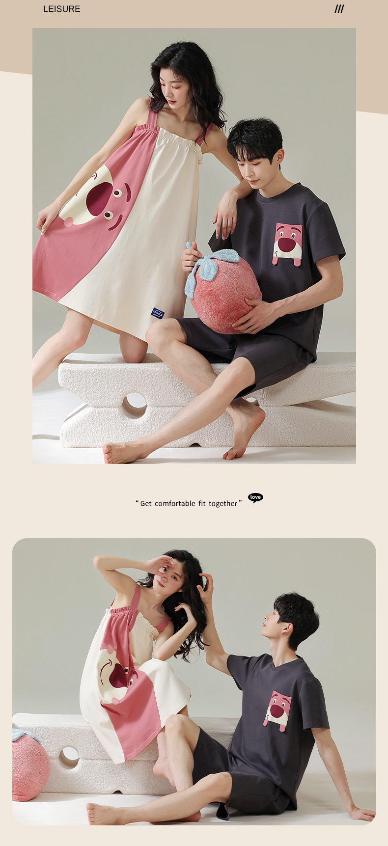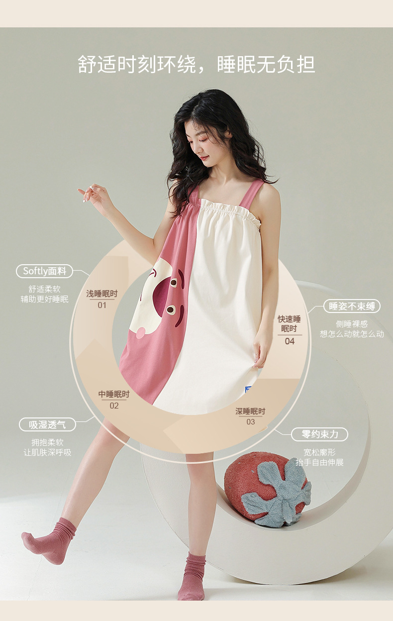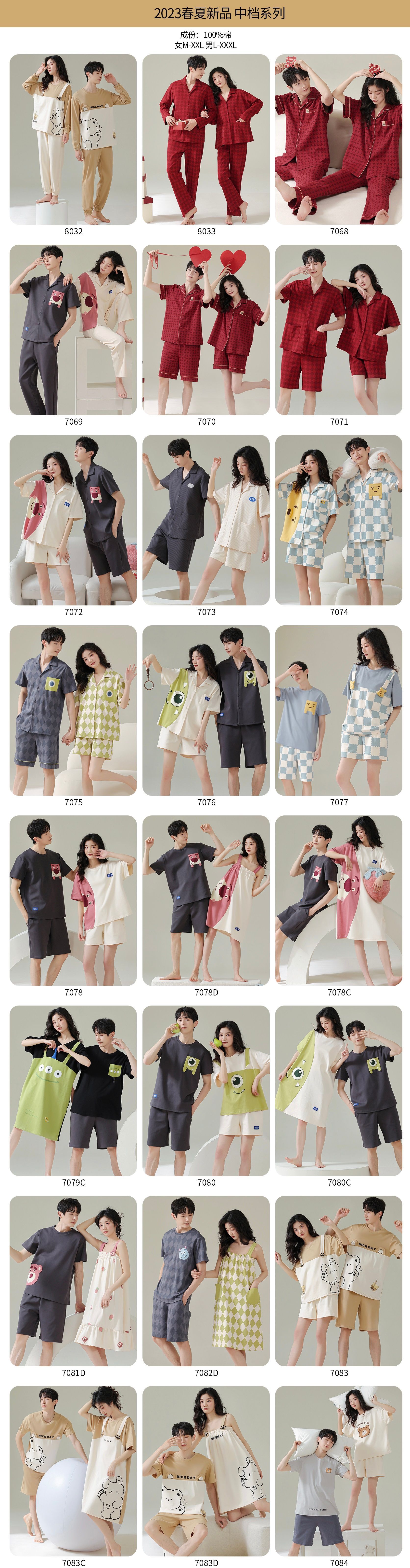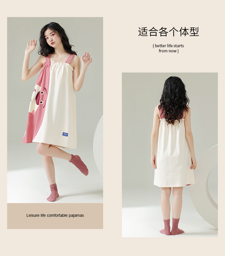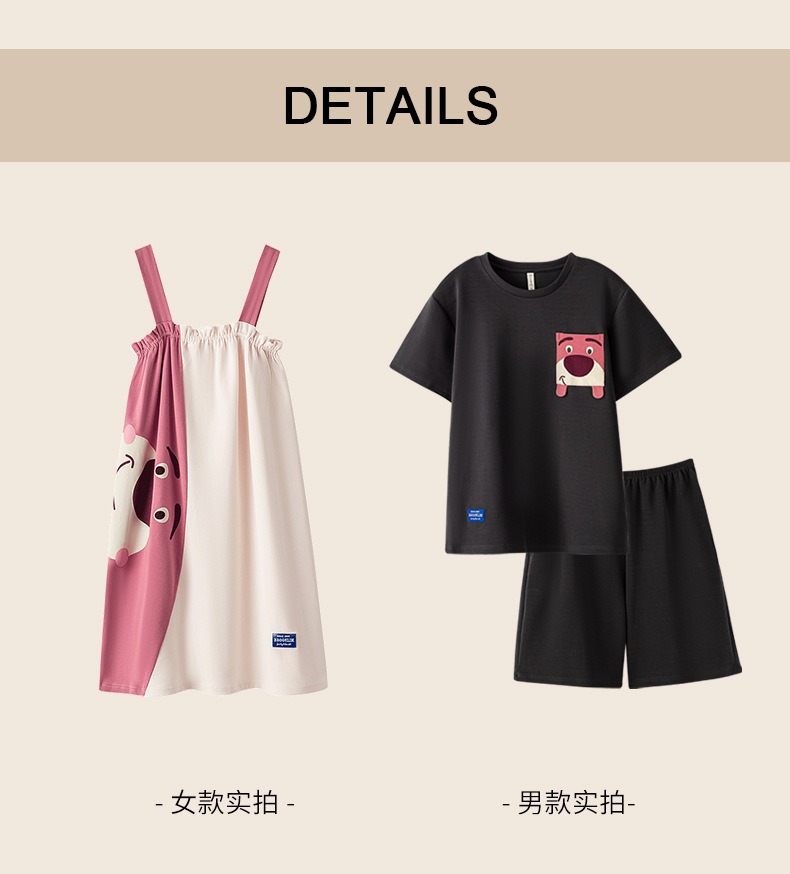 실제 품질의 커플 잠옷 여름용 순면 반팔 슬립 드레스 여성용 면 홈웨어 틱톡 배송스토어 가기