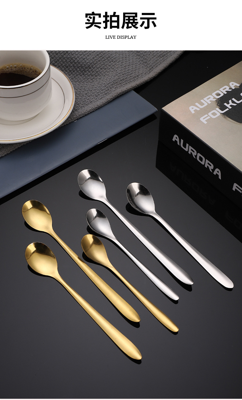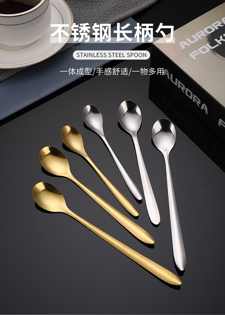 스테인레스 스틸 스푼 가정용 먹이 아기 먹는 스푼 식기 긴 손잡이 커피 스푼 아이스크림 디저트 스푼 도매스토어 가기