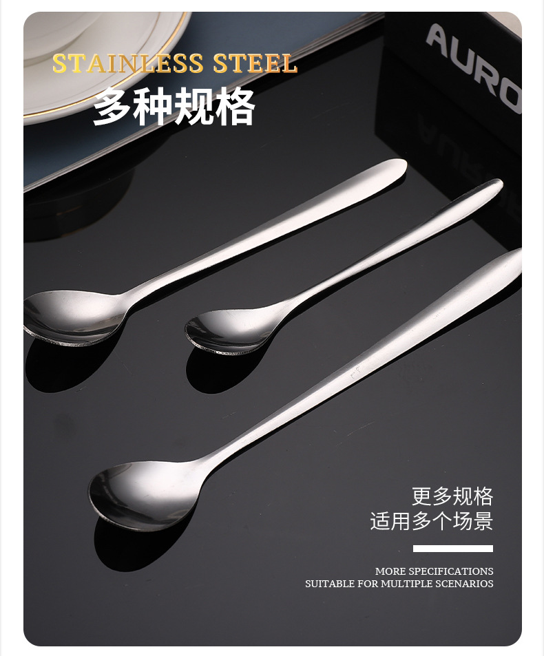스테인레스 스틸 스푼 가정용 먹이 아기 먹는 스푼 식기 긴 손잡이 커피 스푼 아이스크림 디저트 스푼 도매