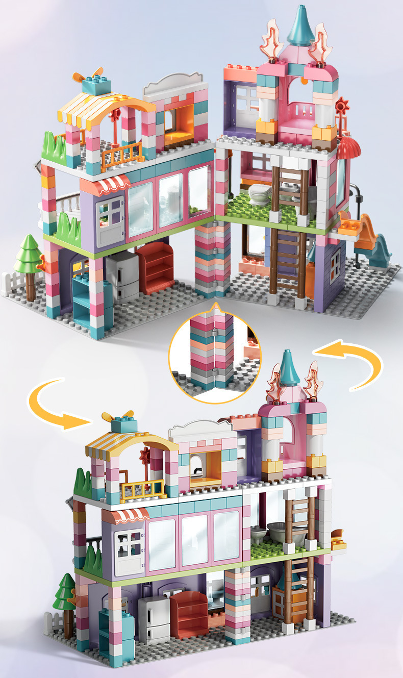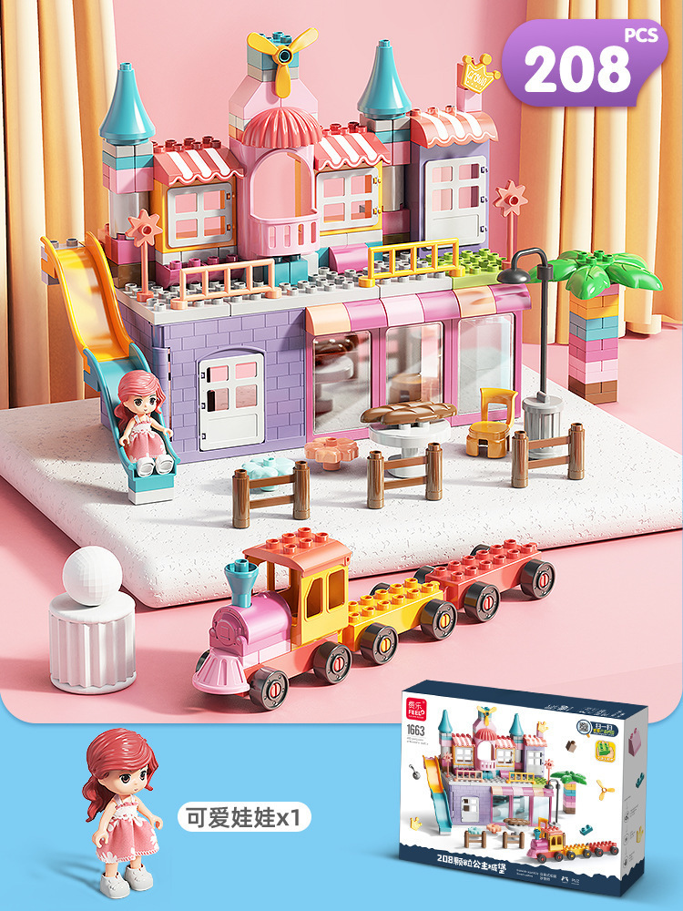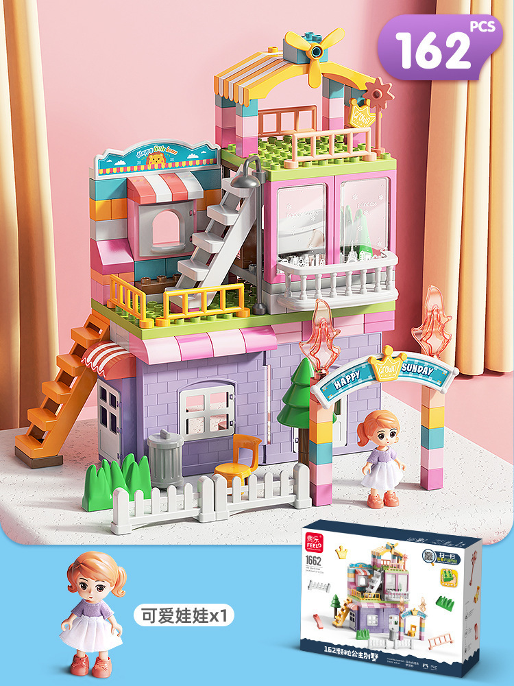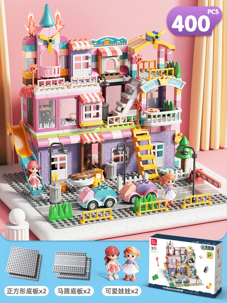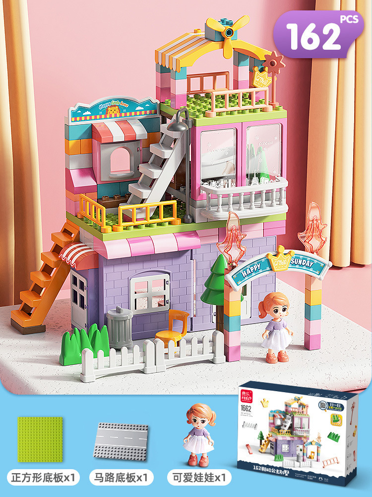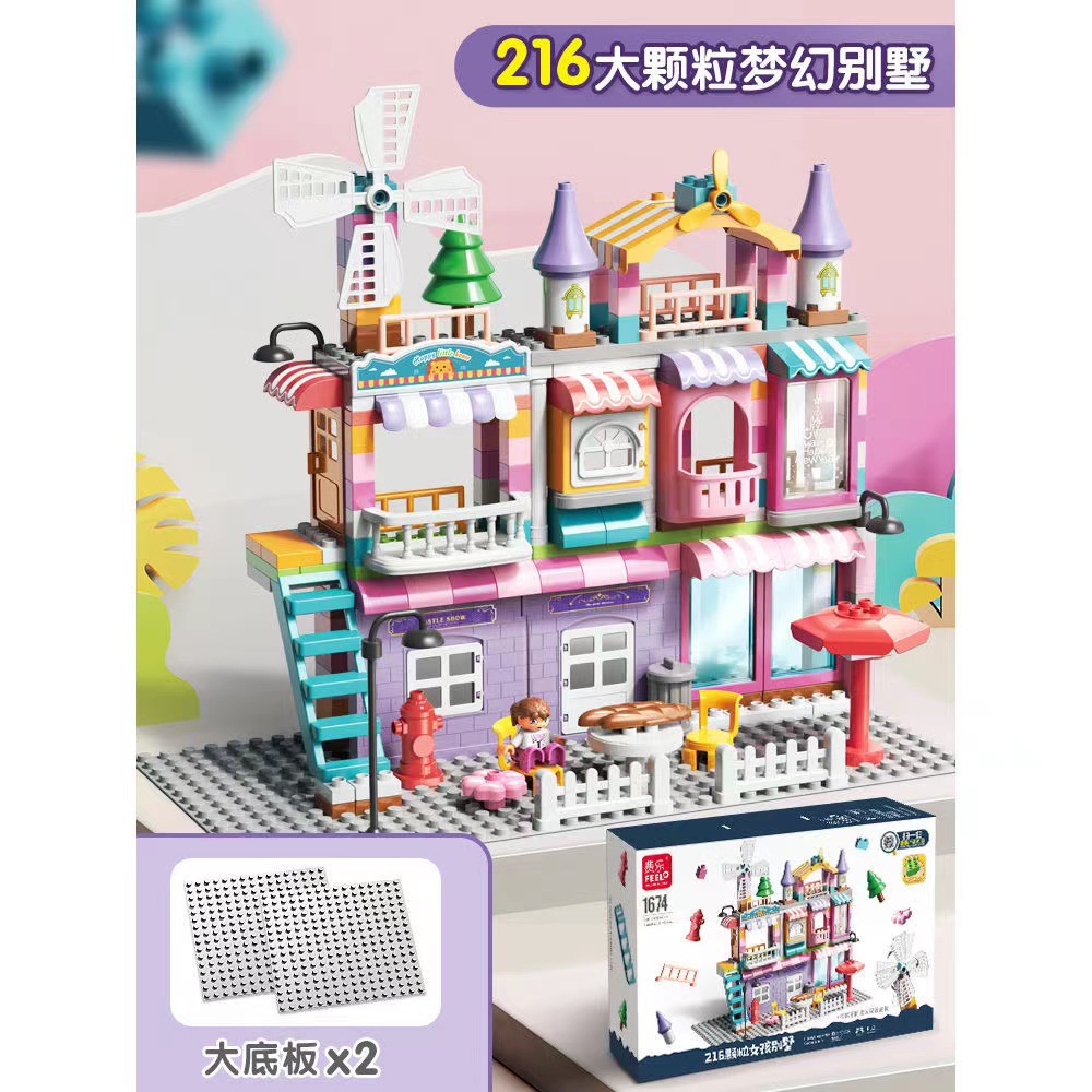 Feile 어린이의 몽환적인 공주 성 빌딩 블록은 다양한 조립 장면 빌딩 블록을 갖춘 대형 입자 교육용 장난감으로 구성되어 있습니다.스토어 가기