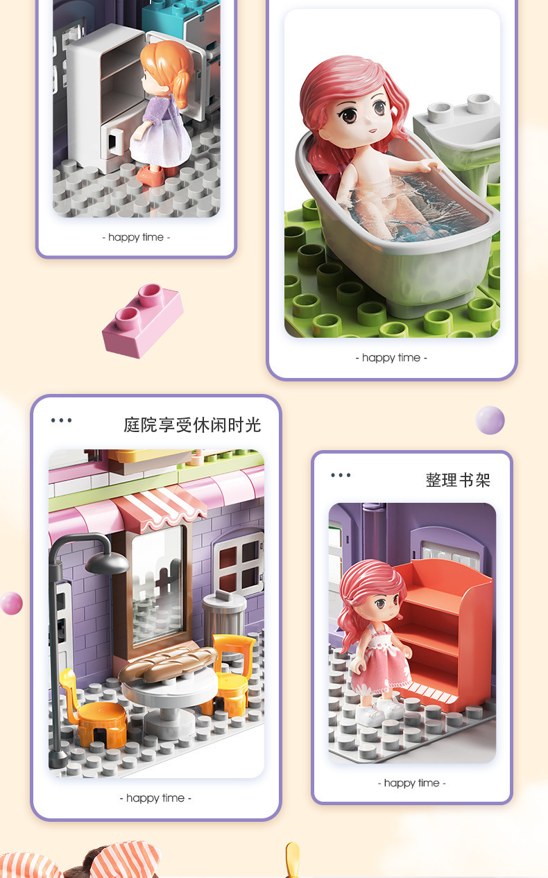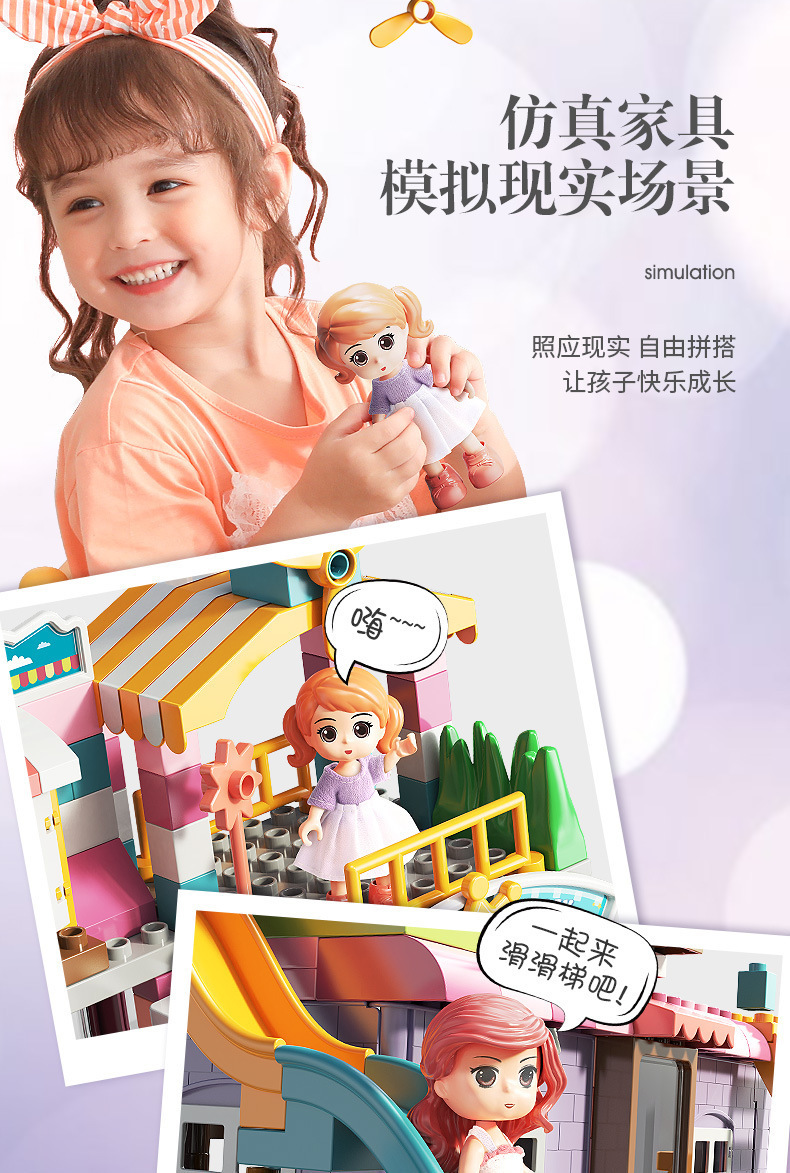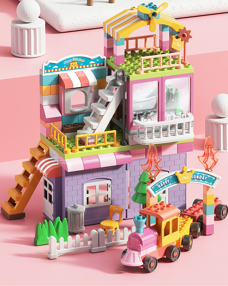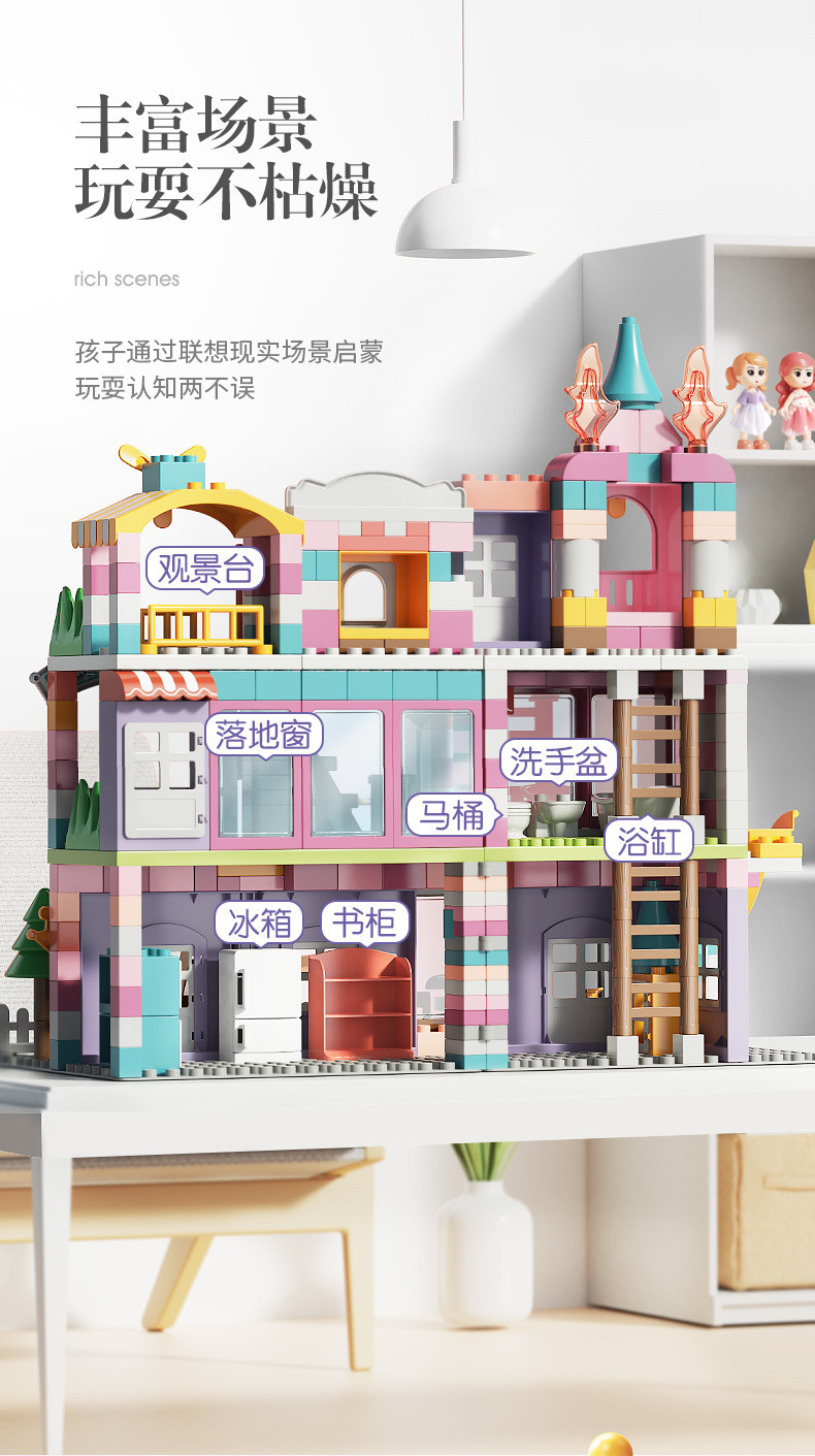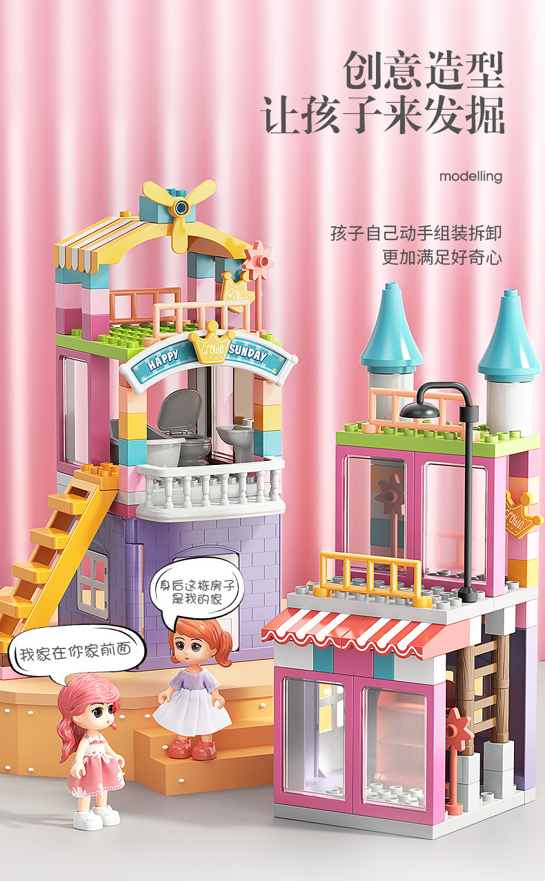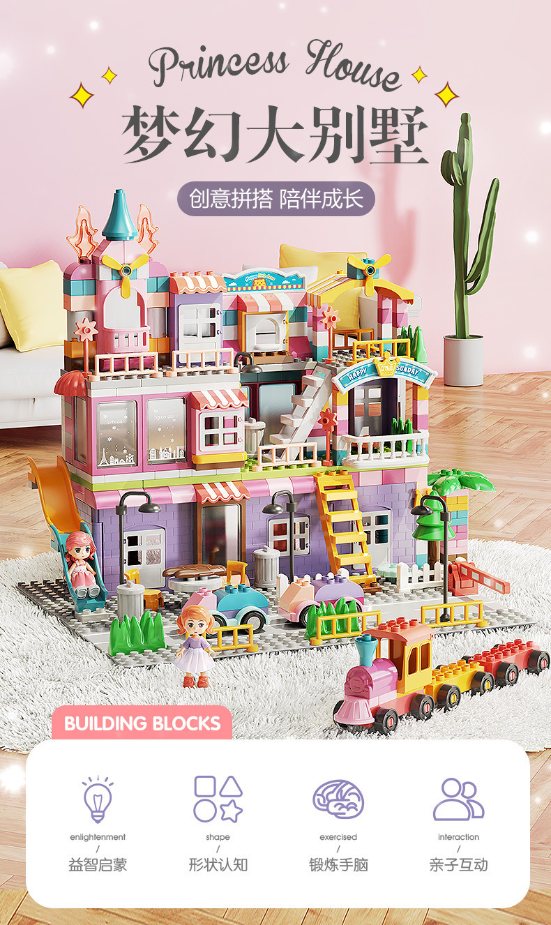 Feile 어린이의 몽환적인 공주 성 빌딩 블록은 다양한 조립 장면 빌딩 블록을 갖춘 대형 입자 교육용 장난감으로 구성되어 있습니다.스토어 가기