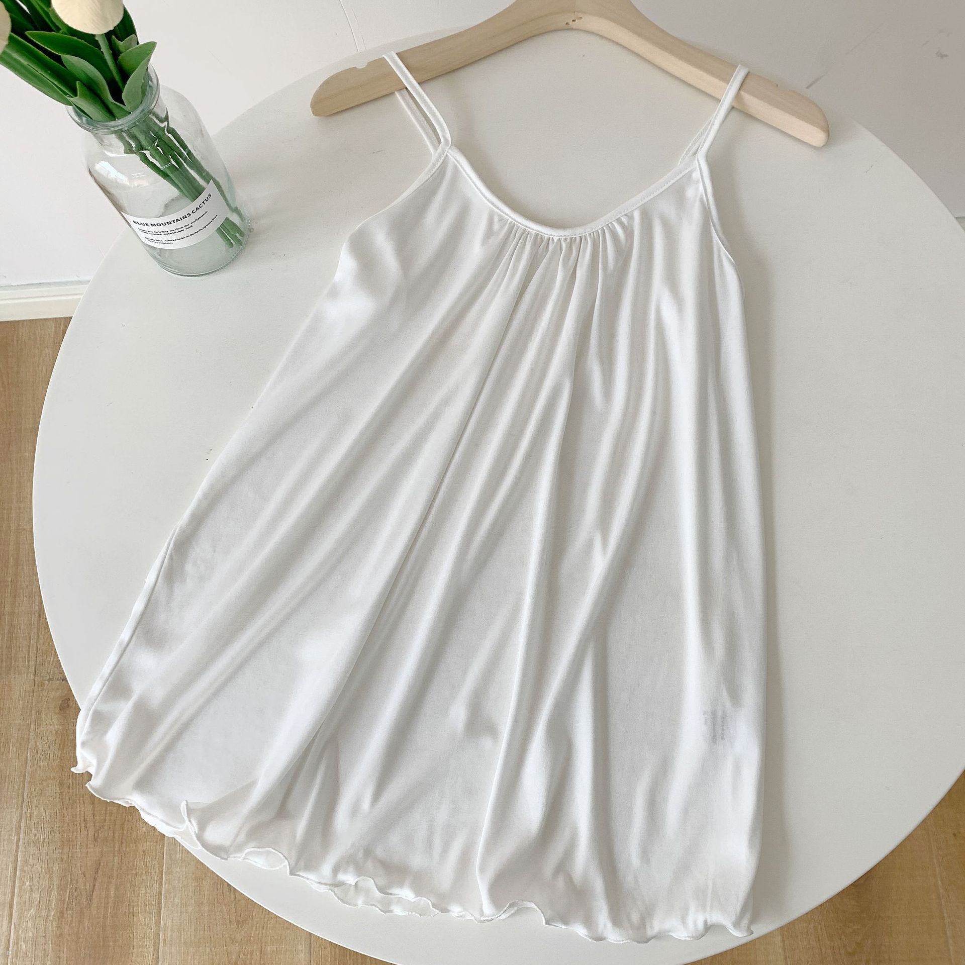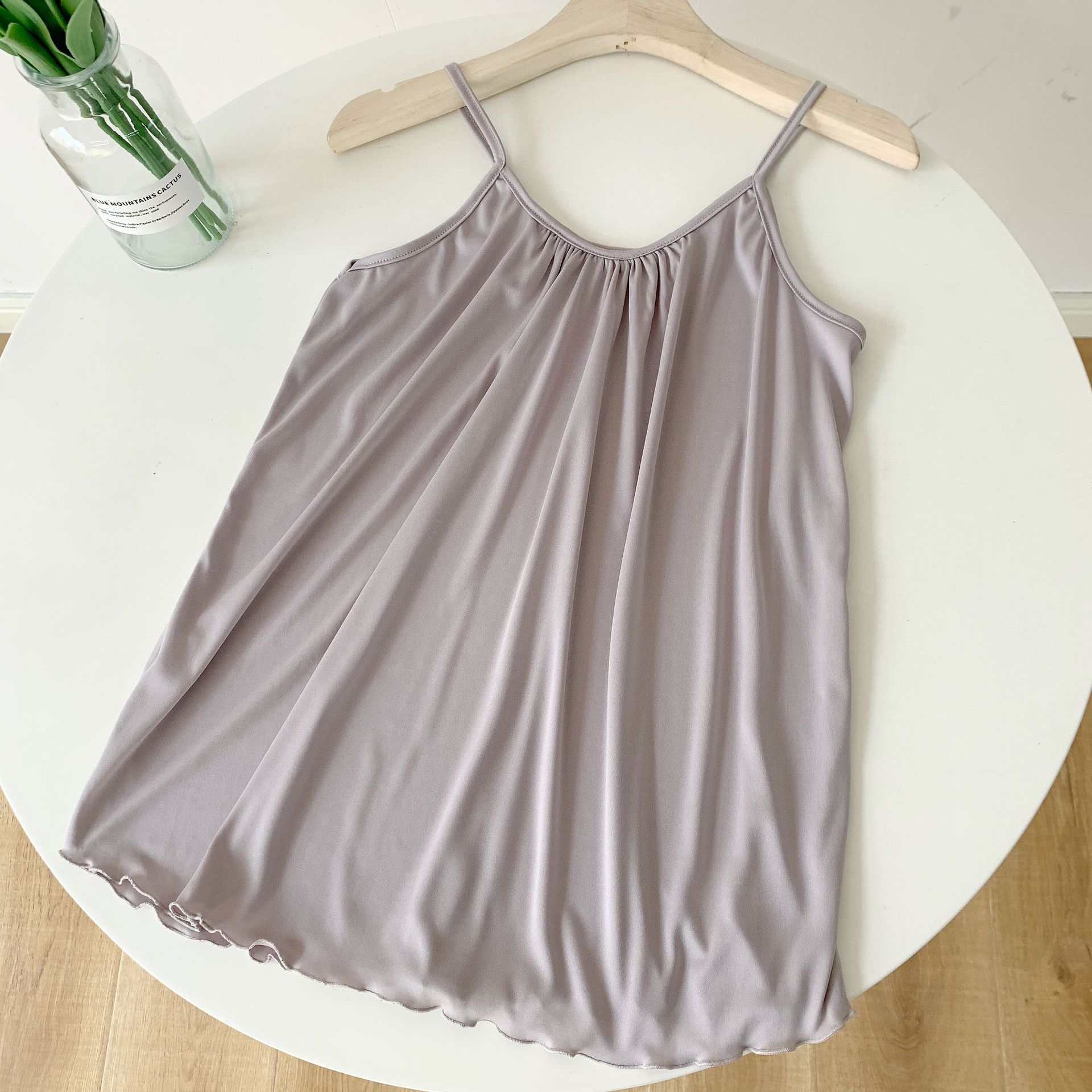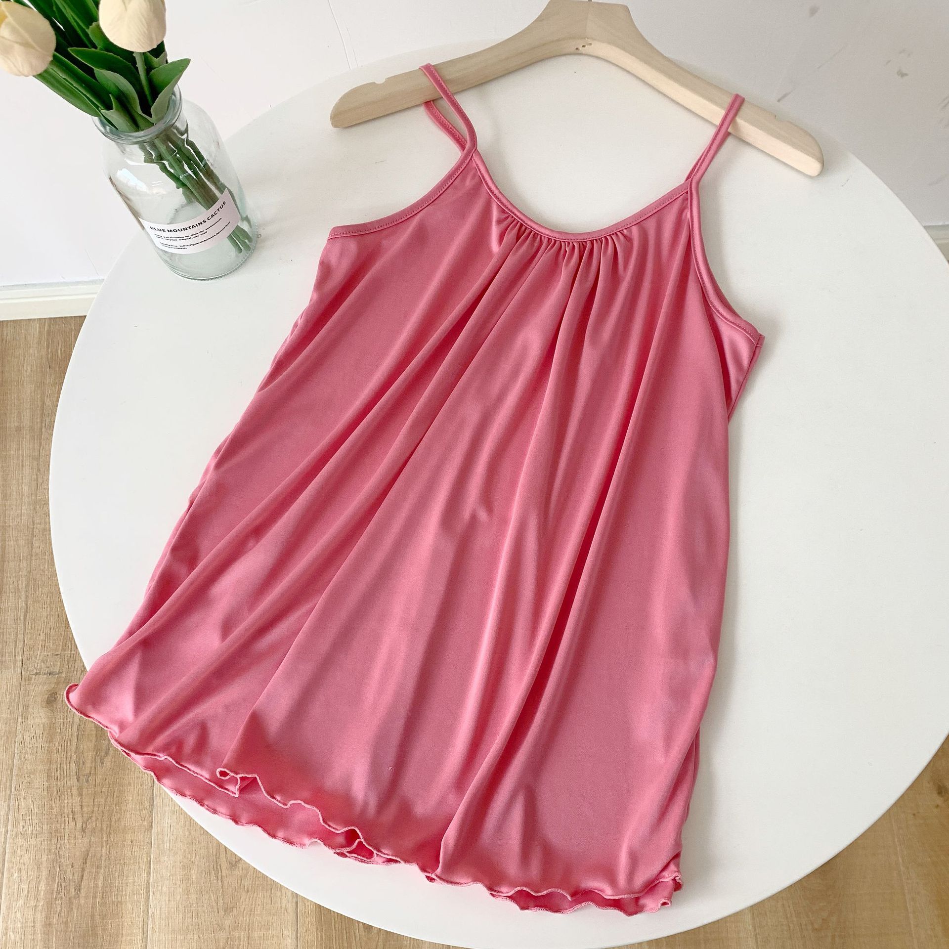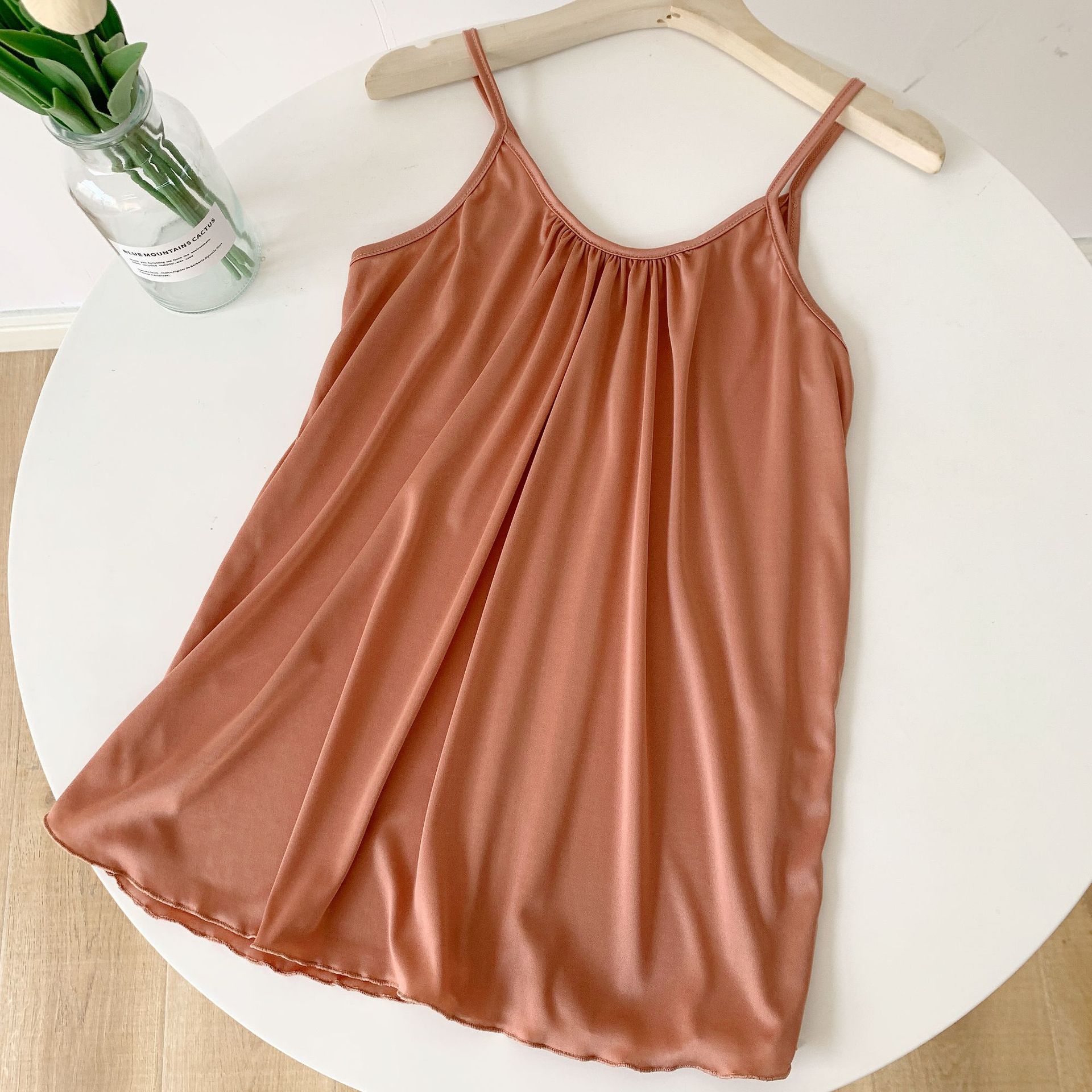 여름 새로운 실크 크루넥 슬립 탑 느슨한 캐주얼 플러스 사이즈 조끼 달콤한 우드 이어 풀오버 여성 탑