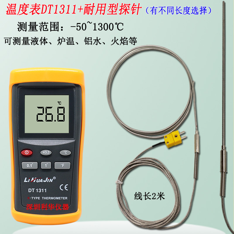 고정밀 온도계 DT1311 고온 산업 측정 로 온도 열전대 테스터 오븐 프로브 3mm스토어 가기