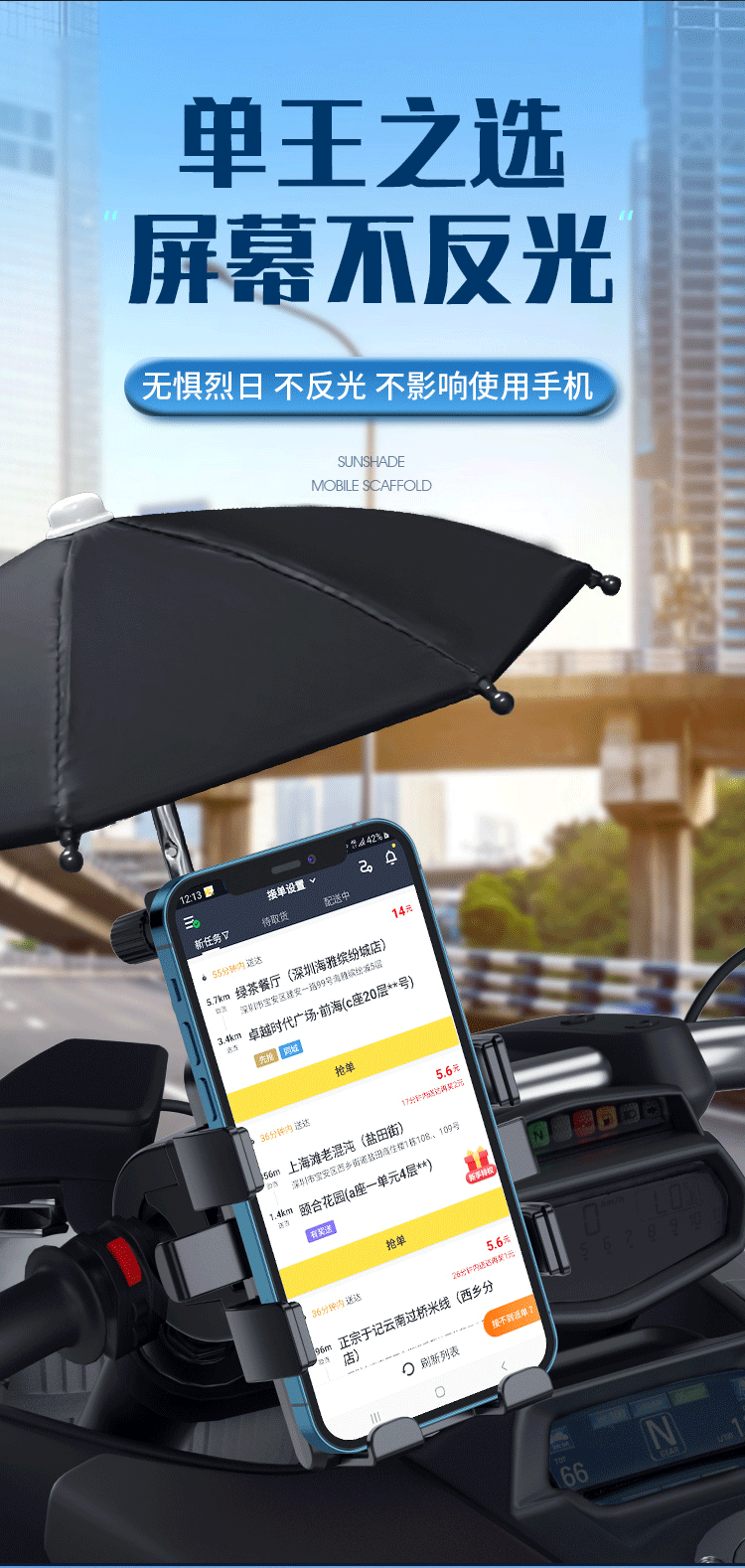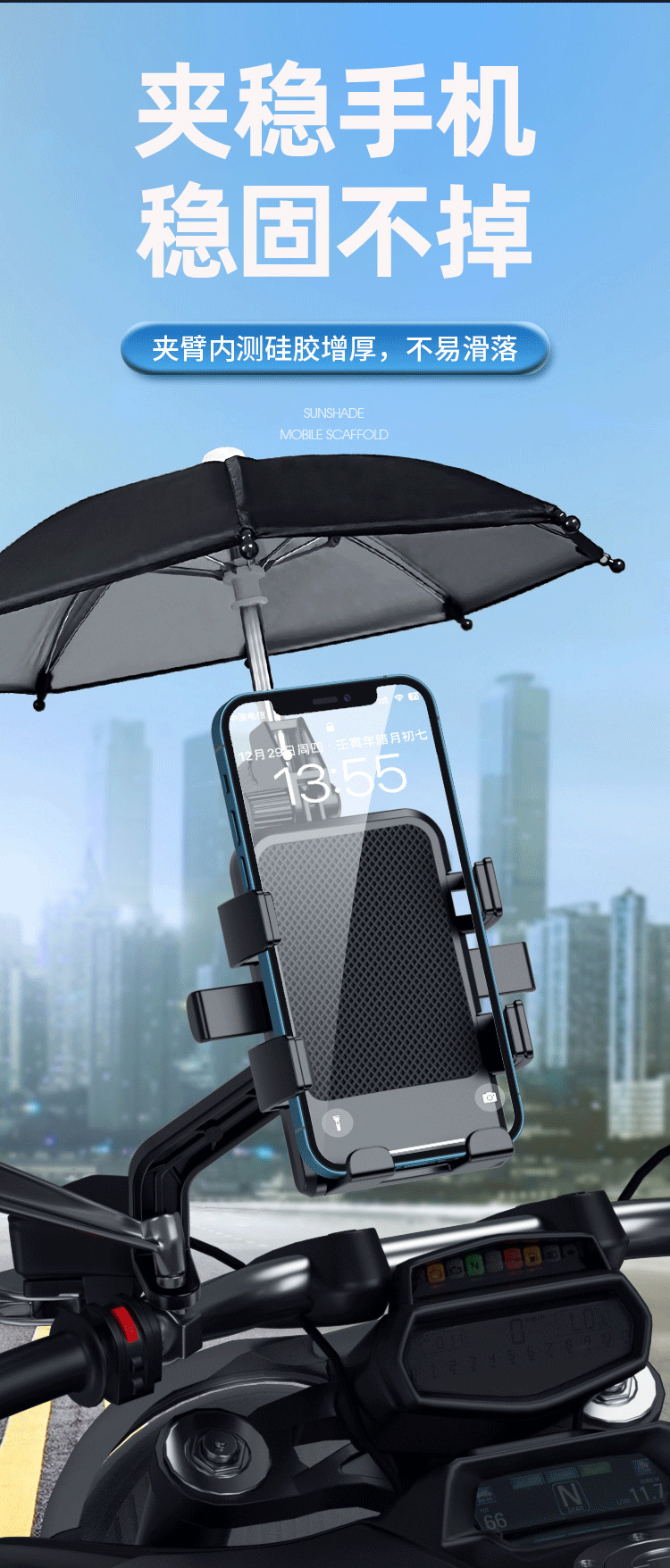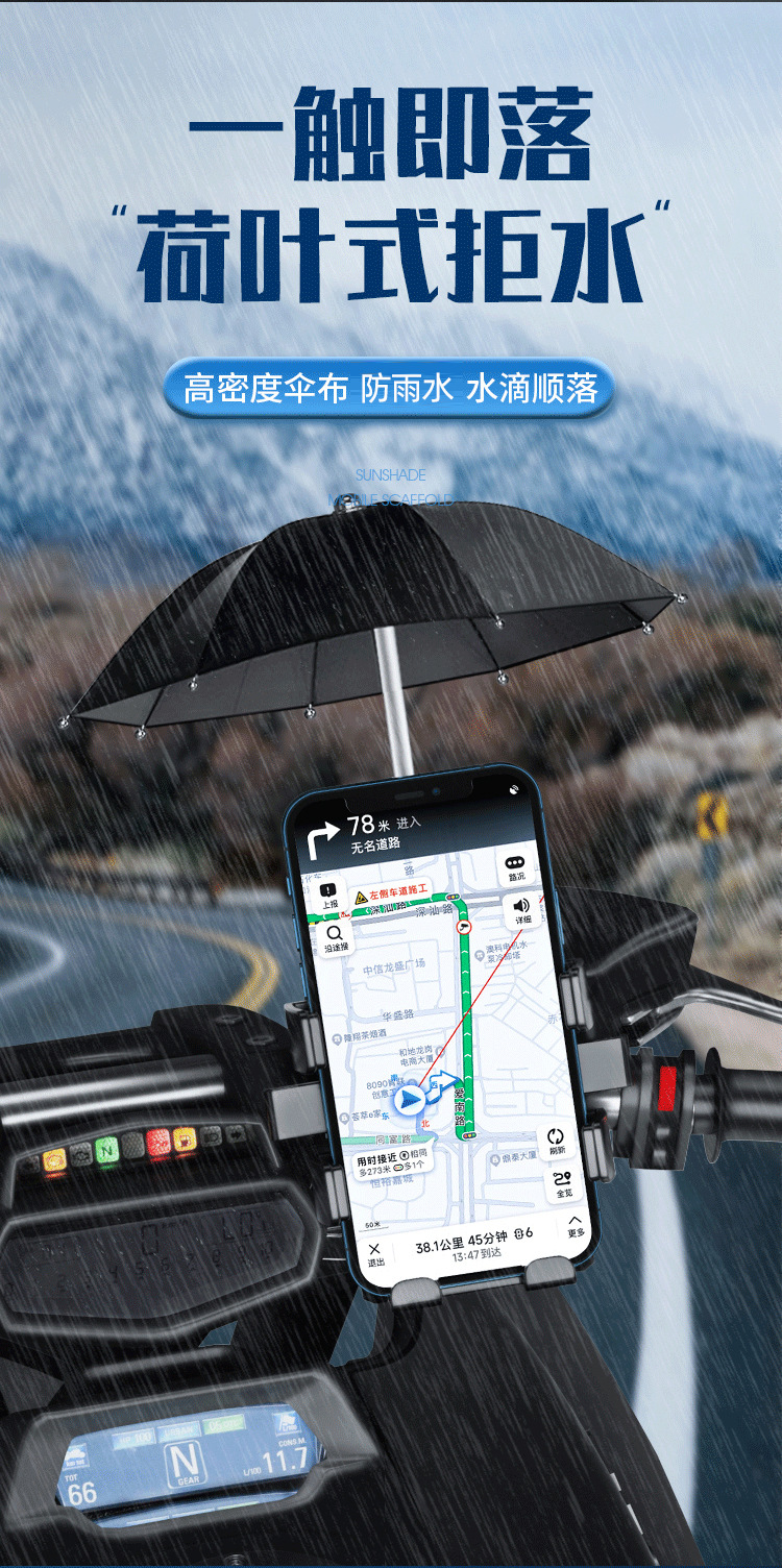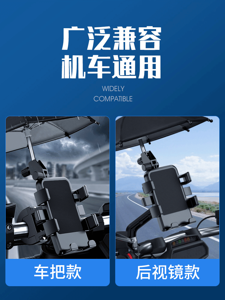 작은 우산이 있는 전기 자동차 휴대폰 홀더, 충격 방지 및 방수, 오토바이 자전거 배터리 자동차 테이크아웃 내비게이션 홀더