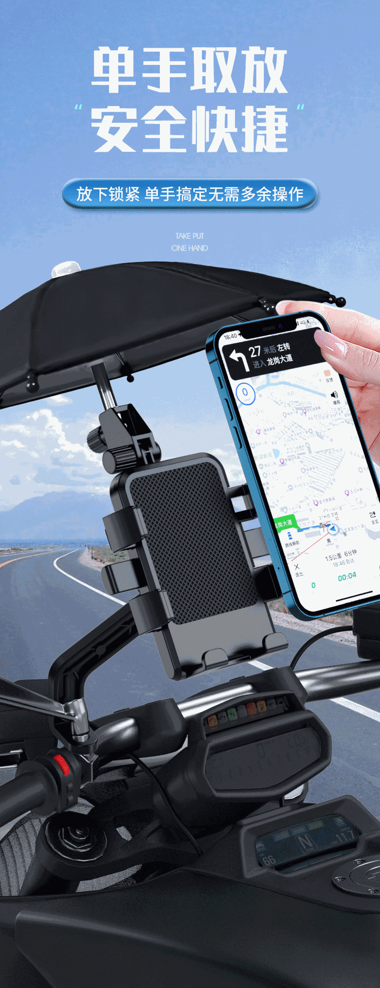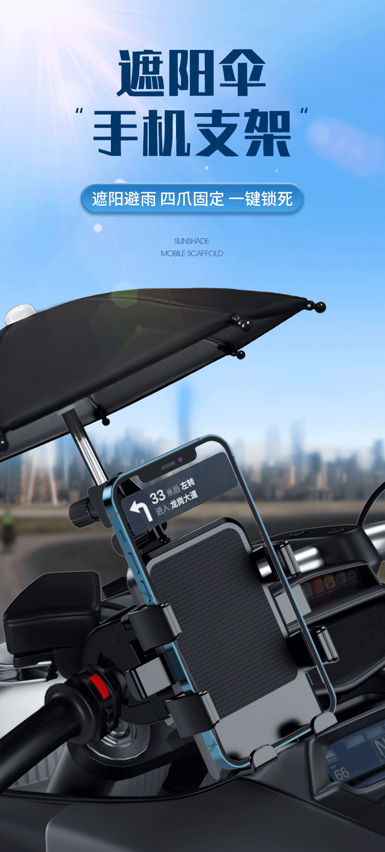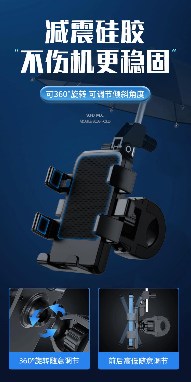 작은 우산이 있는 전기 자동차 휴대폰 홀더, 충격 방지 및 방수, 오토바이 자전거 배터리 자동차 테이크아웃 내비게이션 홀더